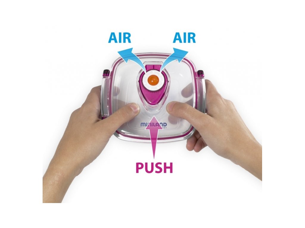 Hermetické misky na jídlo s unikátním ventilem pro vakuové uzavření obsahu misky jsou ideální pro bezpečné uchování i přenášení dětských příkrmů. Jídlo v takto uzavřené misce vydrží déle čerstvé. Víčko je vyrobeno z vysoce kvalitního tritanového materiálu.