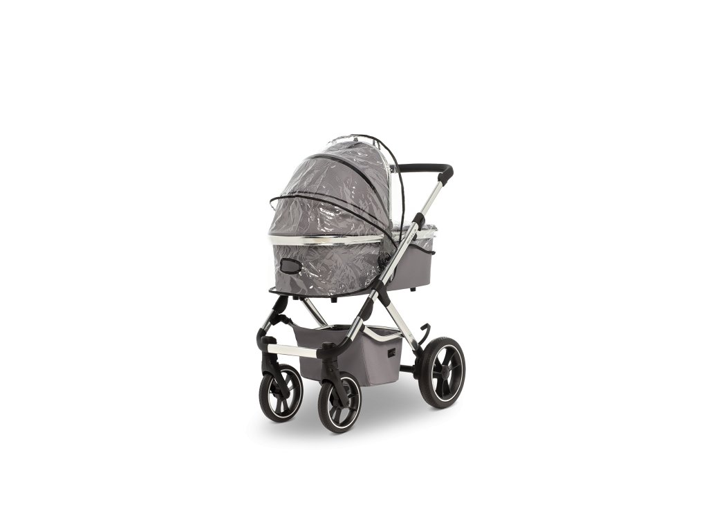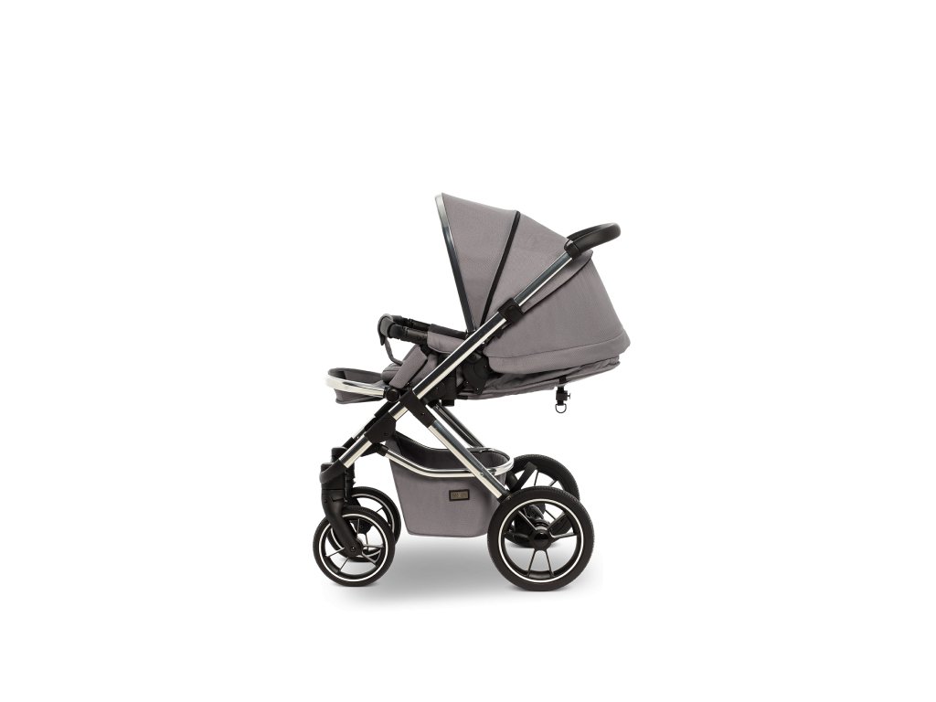 Balení kočárku obsahuje: podvozek, přední a zadní kola, hlubokou vanu se stříškou, nánožníkem, sportovní sedák, madlo před dítě, stříšku na sportovní sedák, pláštěnku a prodyšnou matraci PREMIUM firmy Träumeland.