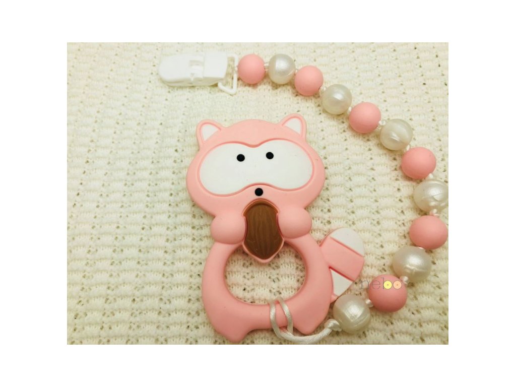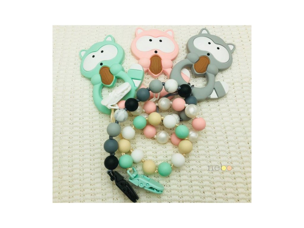 Silikonové zvířátko lze odepnout a použít tak šnůru jako klip na dudlík a zvířátko jako samostatné kousátko.