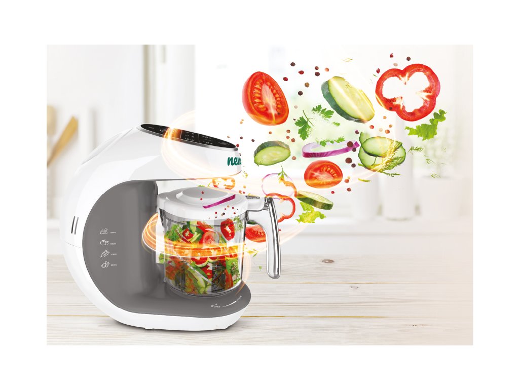 - Mixér je navržen s ohledem na maminky, které si cení pořádku a pohodlí. Už nemusíte připravovat ingredience a jídlo v páře v samostatných hrncích. Neno Cibo to všechno udělá za vás a ušetří vám čas při úklidu.