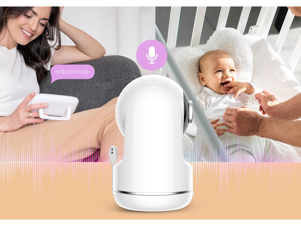 - Obousměrná komunikace – slyšte dítě a uklidněte ho na dálku přes mikrofon v přijímači