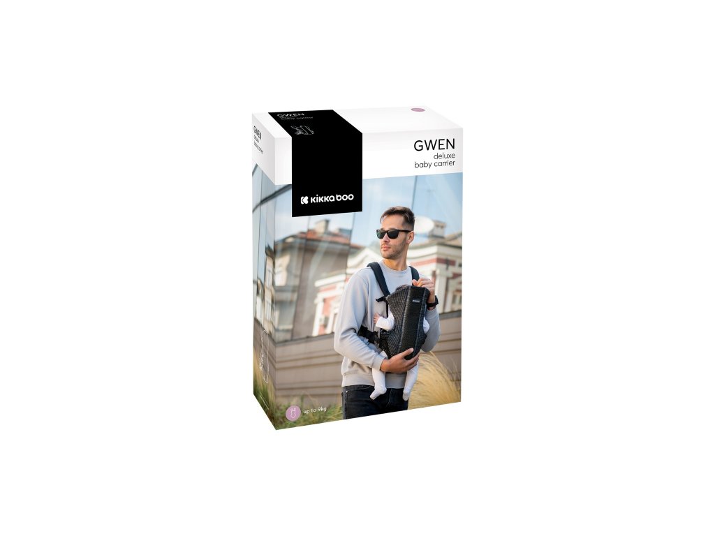 Nosítko KikkaBoo Gwen nabízí 3 polohy nošení dítěte - směrem k rodiči (od 3 měsíců), směrem od rodiče (od 3 měsíců) a na zádech (od 6 měsíců). Inovativní tvar nosítka podporuje správnou polohu zad dítěte. Praktický odnímatelný bryndáček na vnitřní straně chrání nosítko před znečištěním.