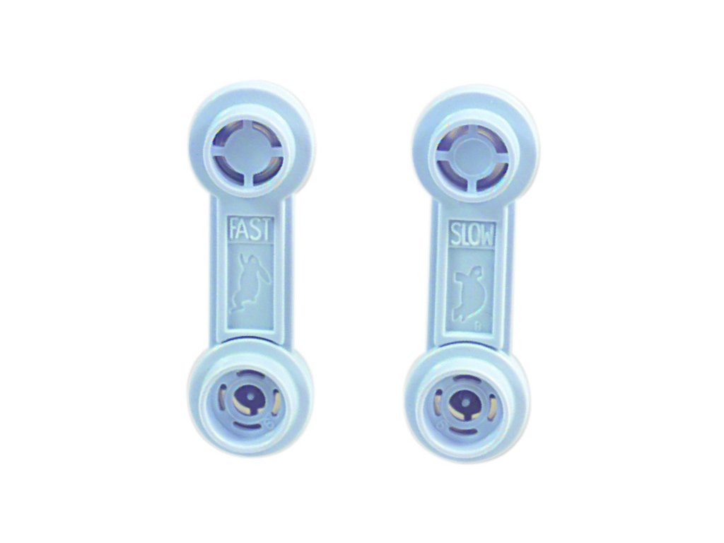 Dvoustranná membrána pro hrnky s variabilním průtokem Nuby Dual-Flo zabraňuje kapaní. Membránu je možno otočit a regulovat tak sílu průtoku tekutiny (želvička značí pomalý a králík rychlý průtok).