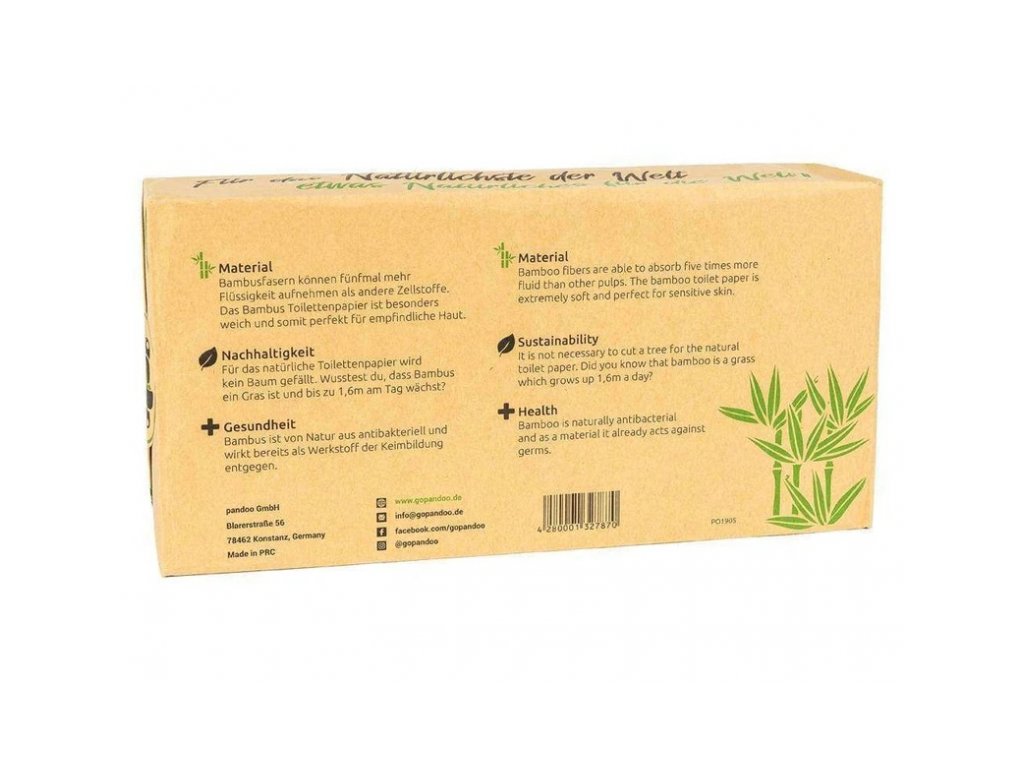 Německá značka Pandoo se zaměřuje na produkty vyrobené z bambusu, které nahrazují běžné jednorázové papírové a plastové výrobky. Bambus použitý pro toaletní papír Pandoo pochází z udržitelného, ekologického zemědělství kde nemají místo žádné postřiky a pesticidy.
