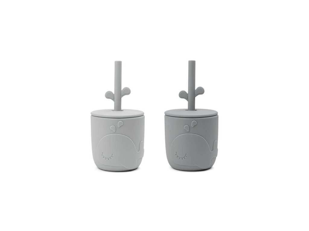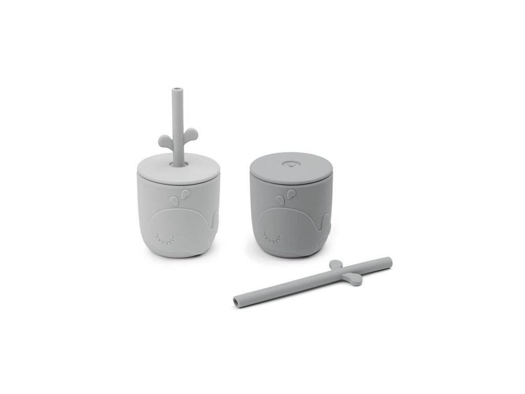 DONE BY DEER Peekaboo set hrnečků s brčkem Wally 2ks - šedý - VÝPRODEJ DVOREČEK
