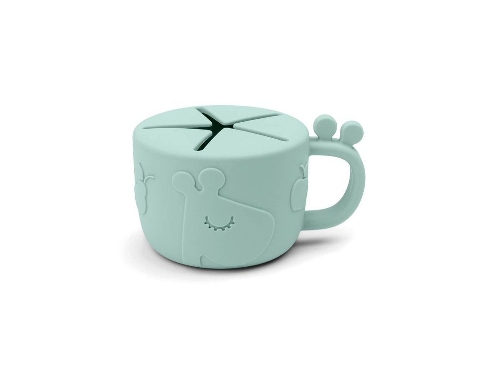 Svačinový hrneček Peekaboo je ideální pro svačinu bez drobků – poskytuje Vašemu děťátku snadný přístup k ovoci a malým svačinkám. Chytrý kelímek udrží svačiny uvnitř, i když se převrhne. Raffi a roztomilé malé ovoce vyskočí z kelímku odolného proti rozsypání. Vyrobeno z potravinářského silikonu, díky kterému je nerozbitný a snadno uchopitelný. Kalíšek doporučujeme mýt ručně. Praktický pro malé svačinky na cestách. Jedna rukojeť umožňuje bezpečné držení jednou rukou, zatímco druhá ruka je volná pro občerstvení. Použijte jej v kočárku, autě a na bezproblémové výlety.