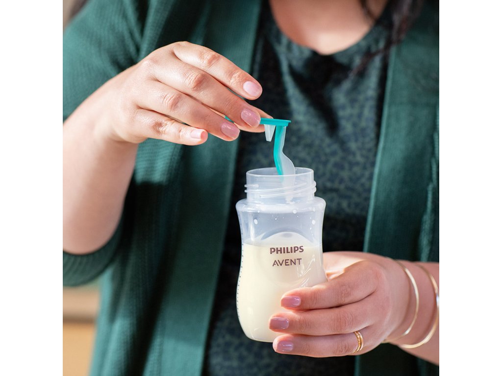 Otvor dudlíku je navržen tak, aby se z něj uvolňovalo mléko pouze při krmení dítěte. Můžete si tak být jisti, že nedojde k vylití mléka doma ani na cestách.