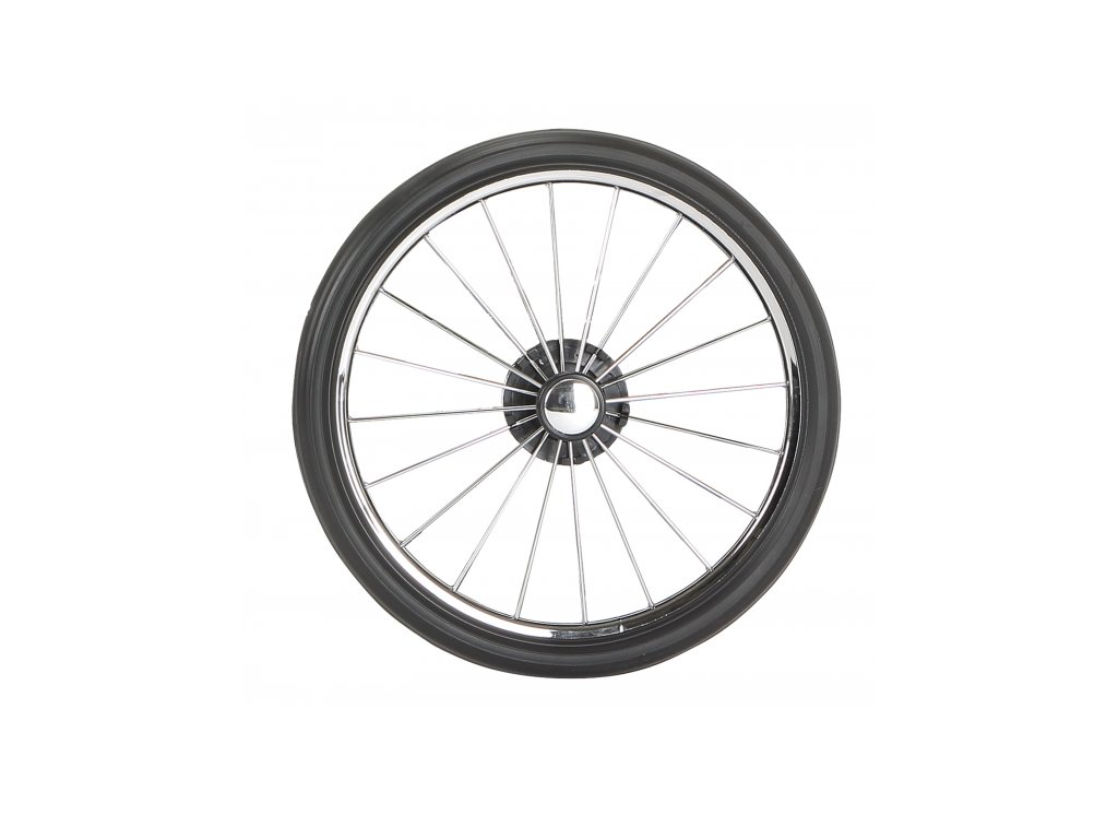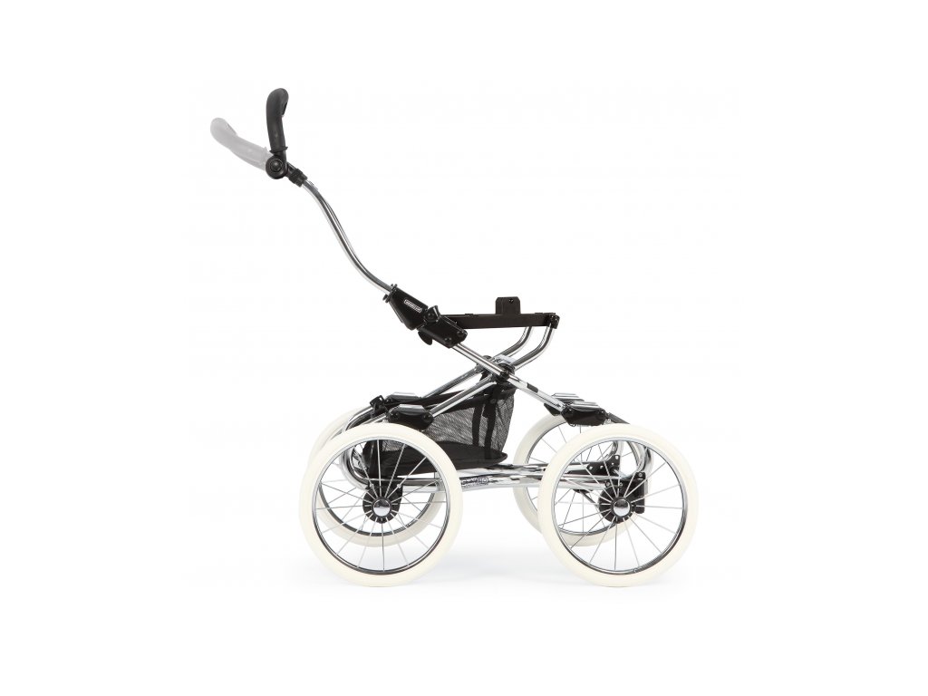 Vyplétaná kola o průměru 36 cm jsou opatřena kuličkovými ložisky. Rukojeť je výškově nastavitelná, součástí podvozku je nákupní košík.