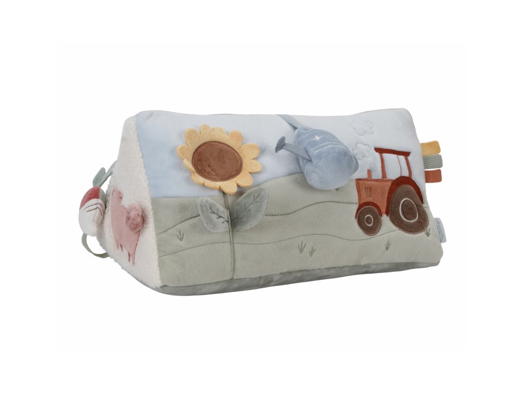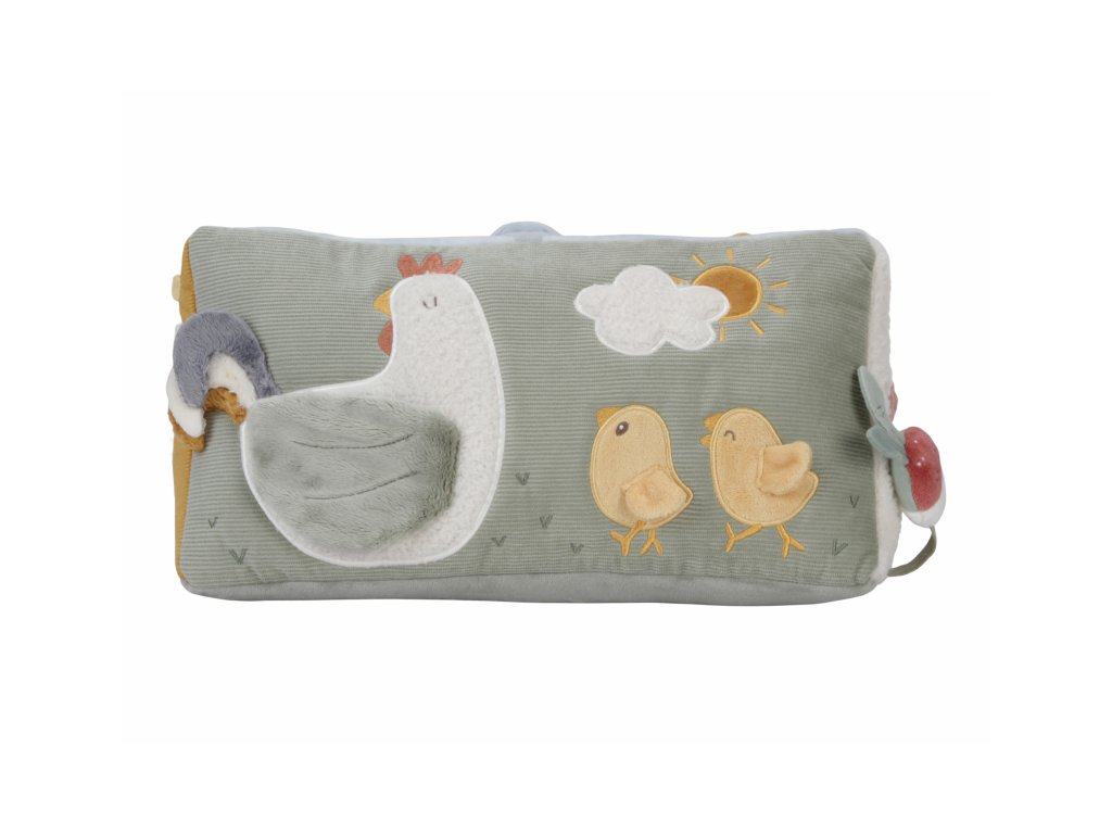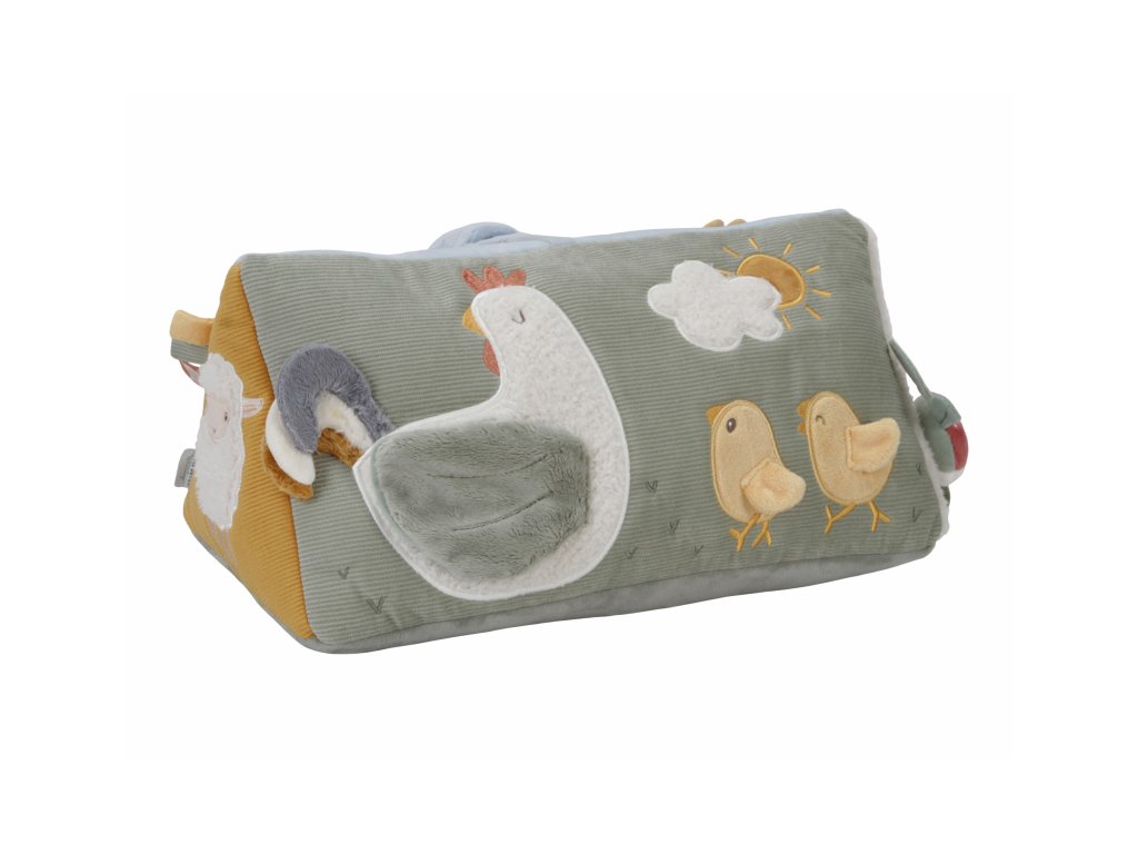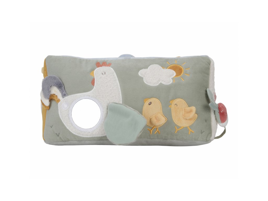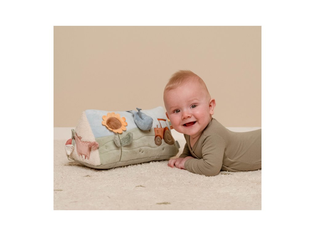 Polštářek z jemného, měkkého materiálu s krásnými motivy života na farmě je speciálně navržený, aby podporoval hraní dítěte na bříšku.