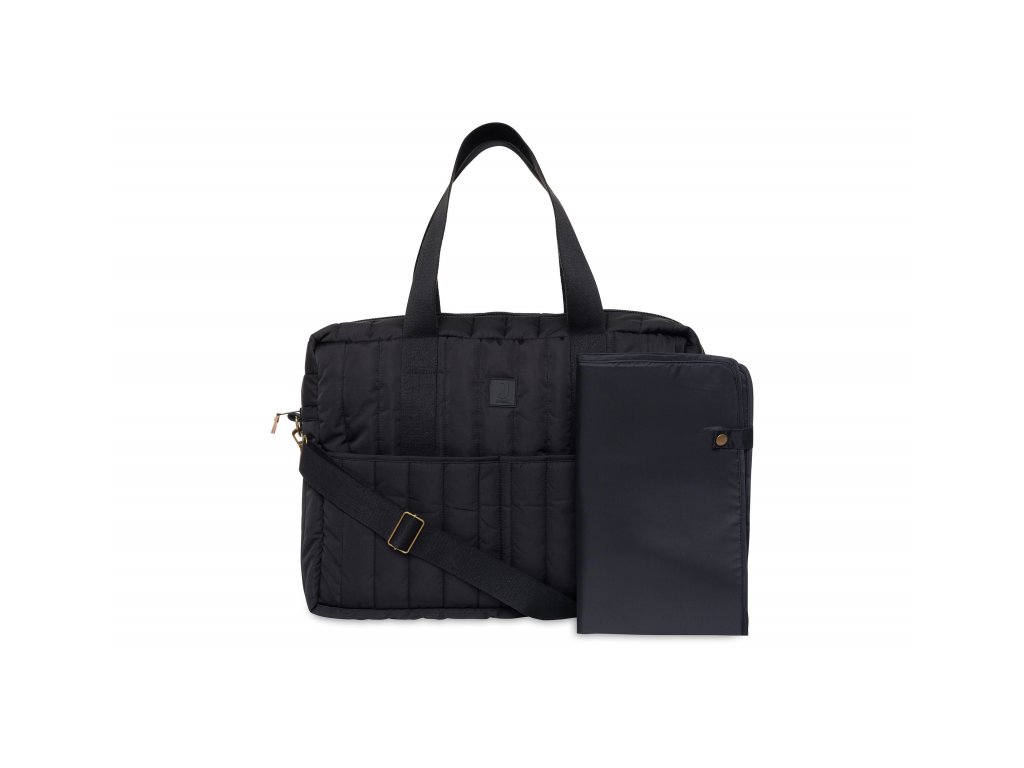 Přebalovací taška z příjemného prošívaného materiálu s výplní a s originální puntíkovanou podšívkou nabízí množství vnitřních i vnějších kapes pro přehledné uspořádání všeho potřebného na procházkách a výletech s vaším dítětem. Součástí tašky je i praktická přebalovací podložka. Ramenní popruh i držadla umožňují nošení přes rameno, v ruce i zavěšení na rukojeť kočárku. Taška se uzavírá na zip.