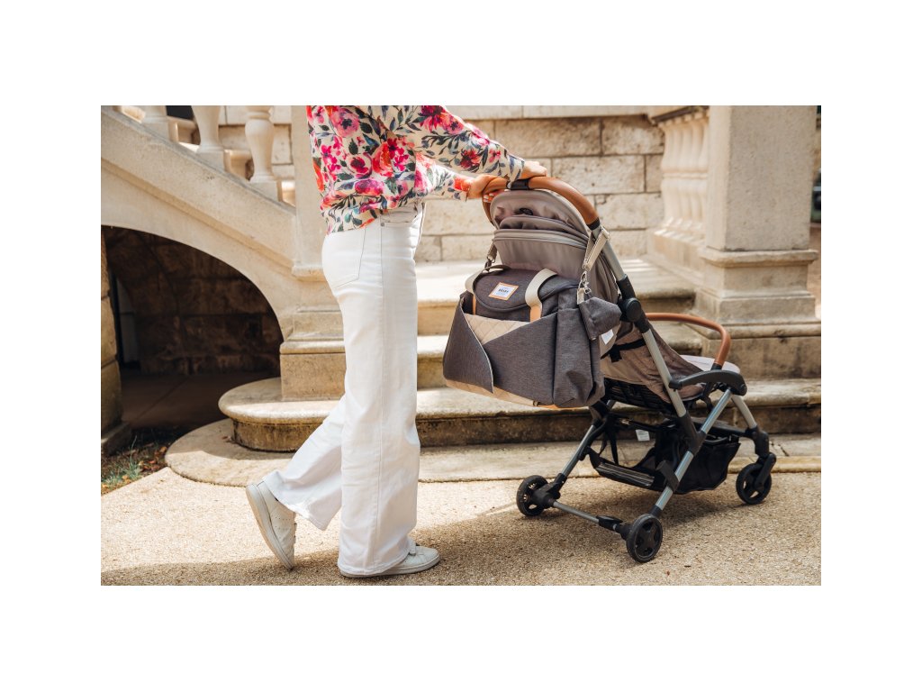 Součástí je termoizolační kapsa na láhev, závěsné antibakteriální pouzdro na dudlík a dva úchyty na zavěšení na madlo kočárku. Na zadní straně tašky je úchyt pro umístění tašky na vysunovací rukojeť kufříku na kolečkách. Dlouhá držadla umožňují snadné nošení v ruce i přes rameno.