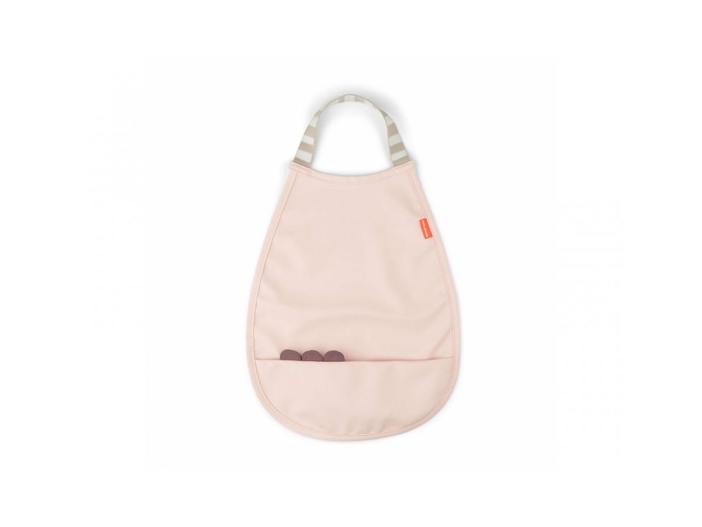 Roztomilý bryndáček má zábavné krokodýlí šupiny vykukující z kapsy a pruhovanou gumu pro snadné navléknutí.