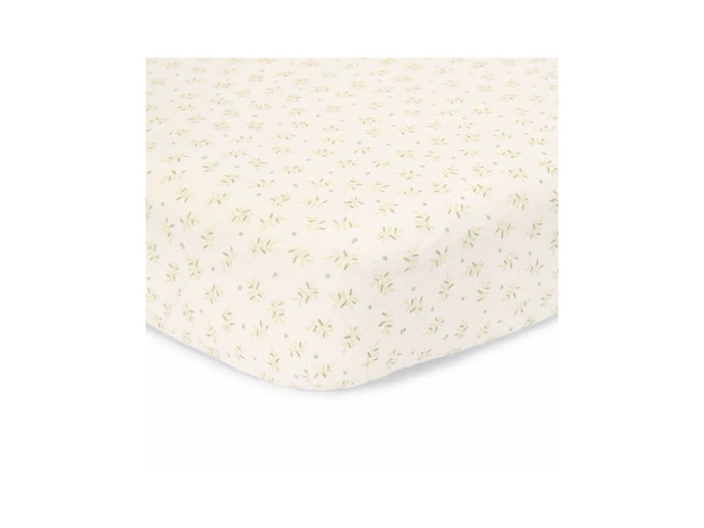Prostěradlo s jemným potiskem je součástí designové kolekce textilu, hraček a doplňků Little Dutch Blueberry Leaves.