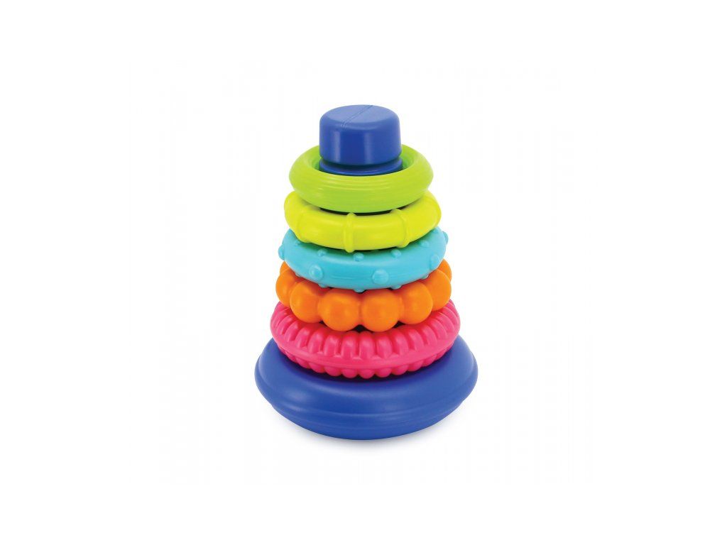 Pyramida je tvořena kulatou základnou a nasazovacími kroužky různých barev, velikostí i textur.