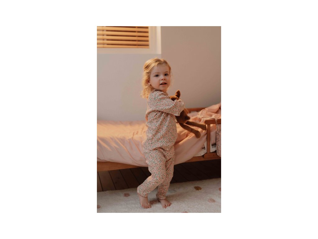 Dětské pyžamo s dlouhým rukávem zakončeným volánkem je vyrobeno z měkké organické bavlny s krásným květinovým potiskem. Pyžamo je součástí designové kolekce textilu, hraček a doplňků Little Dutch Fairy Garden inspirované životem na zahradě.