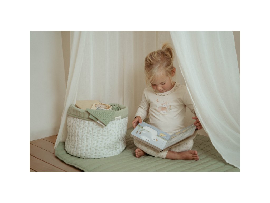 Dětské pyžamo s dlouhým rukávem je vyrobeno z měkké organické bavlny zdobené krásným potiskem a volánkem kolem výstřihu. Pyžamo je součástí designové kolekce textilu, hraček a doplňků Little Dutch Fairy Garden inspirované životem na zahradě.