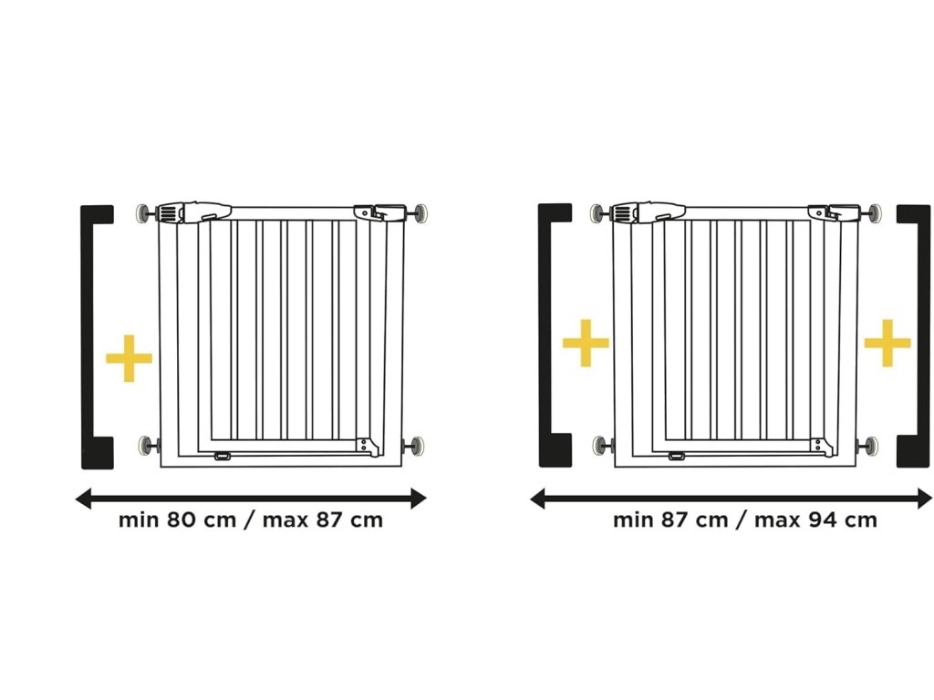 Rozšíření zábrany Safety 1st Simply Close Metal & Wood umožňuje zábranu rozšířit o 7 cm, abyste ji přizpůsobili většímu otvoru.