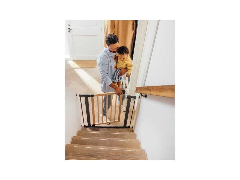 Safety 1st Simply Close Metal & Wood je zábrana v kombinaci kovu a dřeva s jednoduchou instalací bez vrtání. Zábrana je vhodná do dveří či prostoru mezi stěnami o rozměrech 73 cm až 80 cm a lze ji s pomocí rozšíření zábrany rozšířit až na 87 cm (při použití jednoho rozšíření) nebo až na 94 cm (při použití dvou rozšíření).