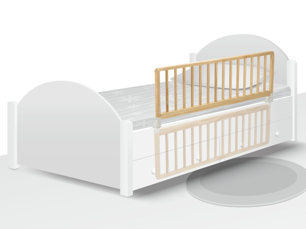 Zábrana na postel Safety 1st chrání dítě před pádem z postele a usnadňuje tak jeho přechod z dětské postýlky do klasické postele. Zábrana se snadno instaluje zasunutím pod matraci. Pevné dřevěné provedení zaručuje stabilní
