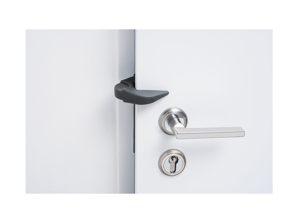 Zarážka do dveří 2v1 brání přiskřípnutí dětských prstů ve dveřích i zabouchnutí dítěte v místnosti.