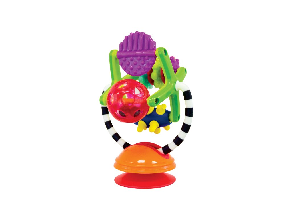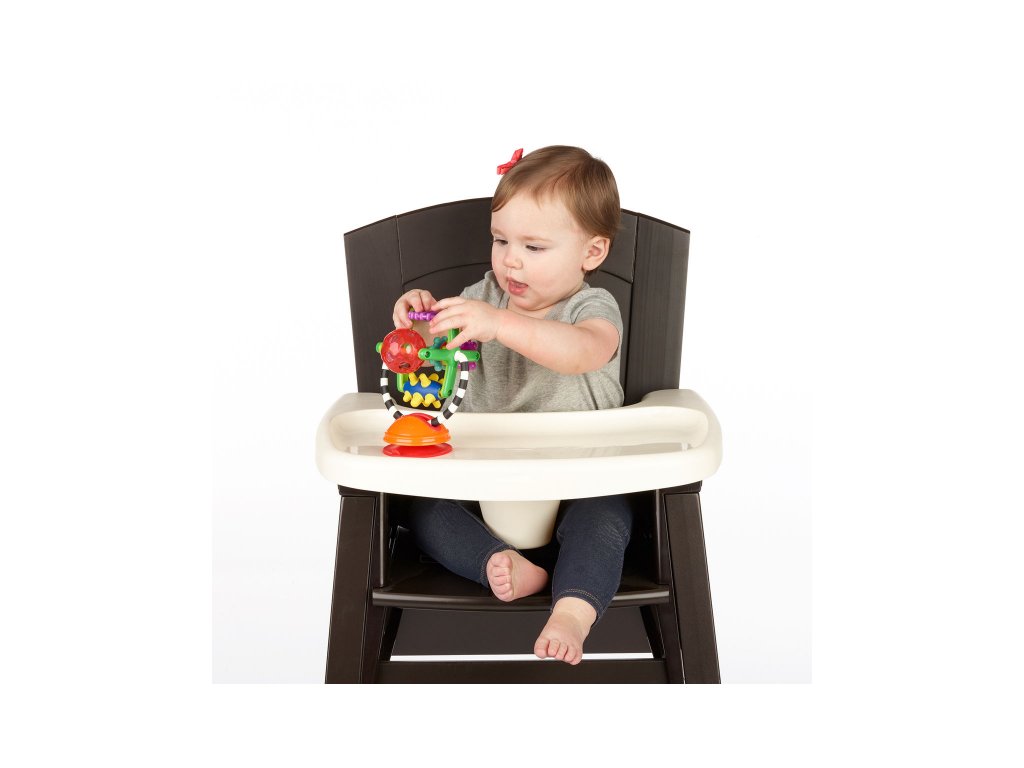 Hračku s přísavkou lze postavit na pult vysoké židličky, stůl apod. Otáčející se mlýnek s různými aktivitami lze používat i samostatně bez základny.