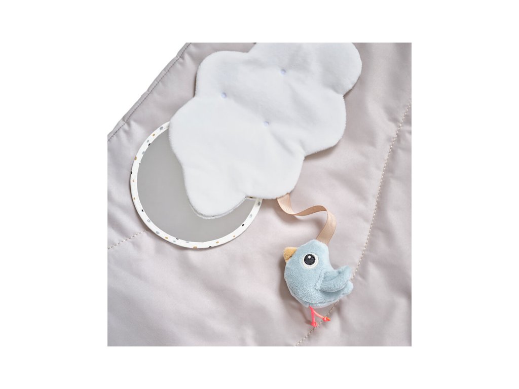 Děti mohou pohodlně ležet na měkké hrací podložce Deer friends a užívat si mnoho smyslových aktivit a stimulačních funkcí. Zábavná hrací deka, kterou si miminko zamiluje pro objevování hraček, procvičování bříška a pozdějším sezení při hraní. Zahrajte si na schovávanou se Zebee schovávající se za zelenými listy. Přitulte se k měkké Lalee a poslouchejte zábavné chrastění, které vydává ptáček, když letí do oblak. Usmívejte se na roztomilou tvář ve snímatelném zrcátku a objevte zvuk vrásnění z Elpheeho uší. Roztomilá hrací podložka Deer friends je v jemných tónech béžové s odstíny modré a zelené. Lze prát na 30 °C. Před praním nezapomeňte zrcátko sundat.