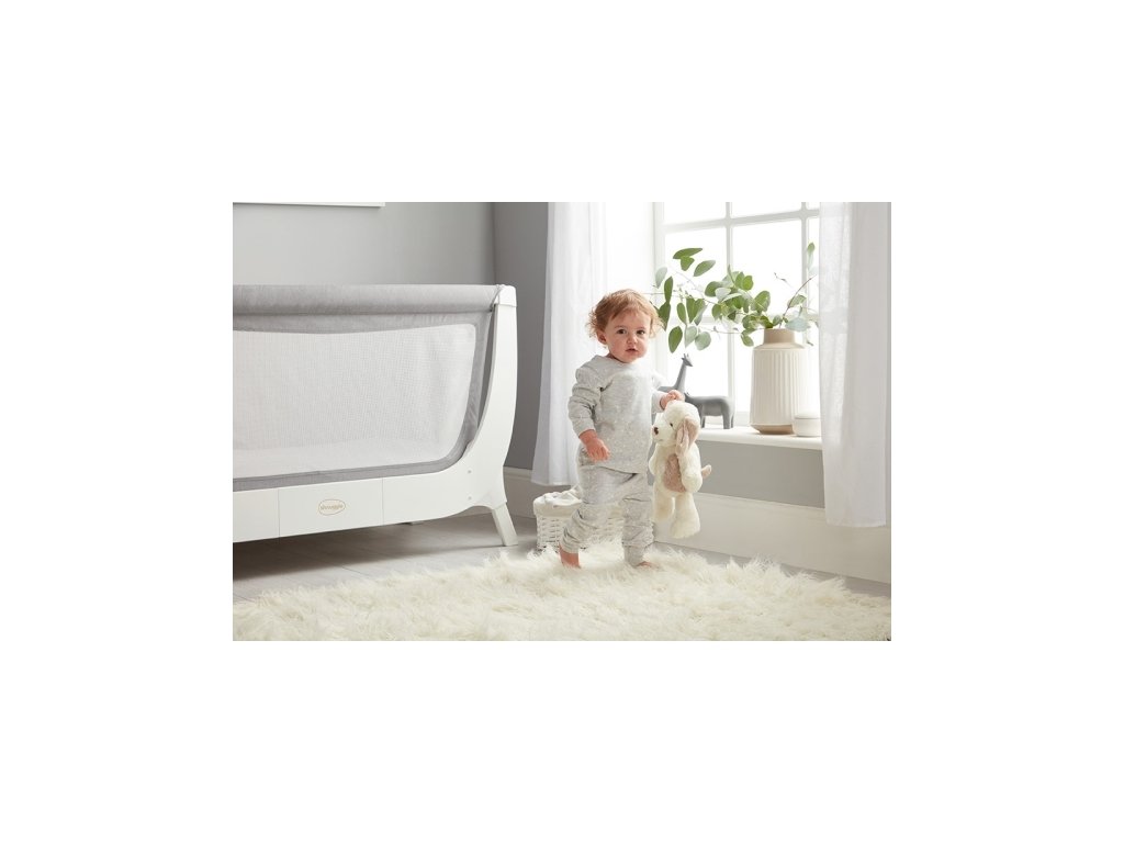 První postýlka Shnuggle Air je unikátně navržená tak, aby spolu s vaším děťátkem rostla. Pomocí setu pro přestavbu je snadno přeměníte na stylovou postýlku, která vašemu dítěti zajistí bezpečný a pohodlný spánek od narození až přibližně do věku dvou let nebo do výšky 89 cm. Set pro přestavbu umožňuje snadné rozšíření rámu a roštu a doplnění textilií. Pro kompletní přestavbu na postýlku je potřeba dokoupit také matraci do postýlky Airflow.
