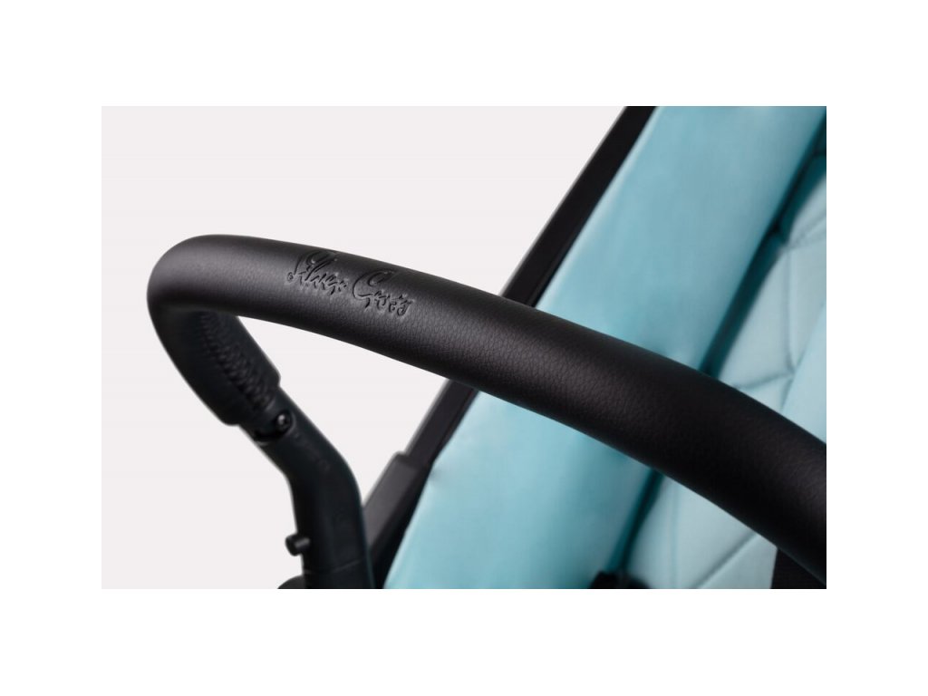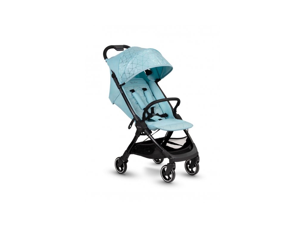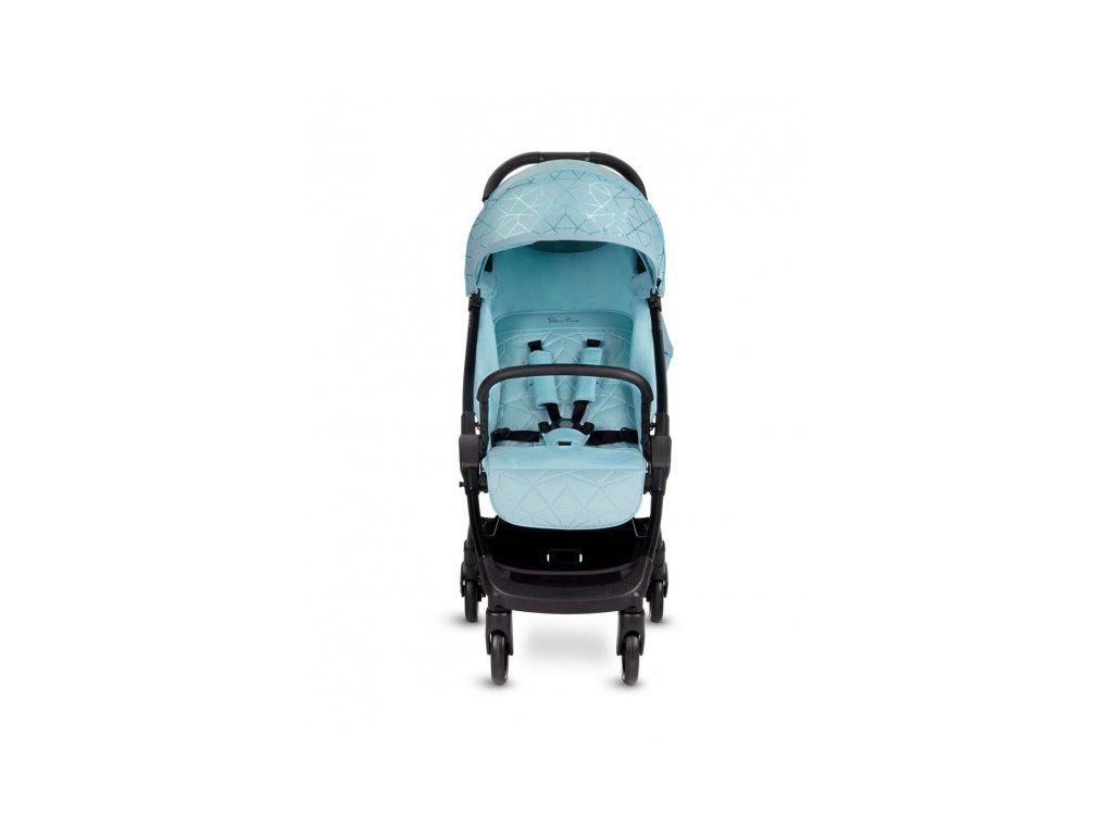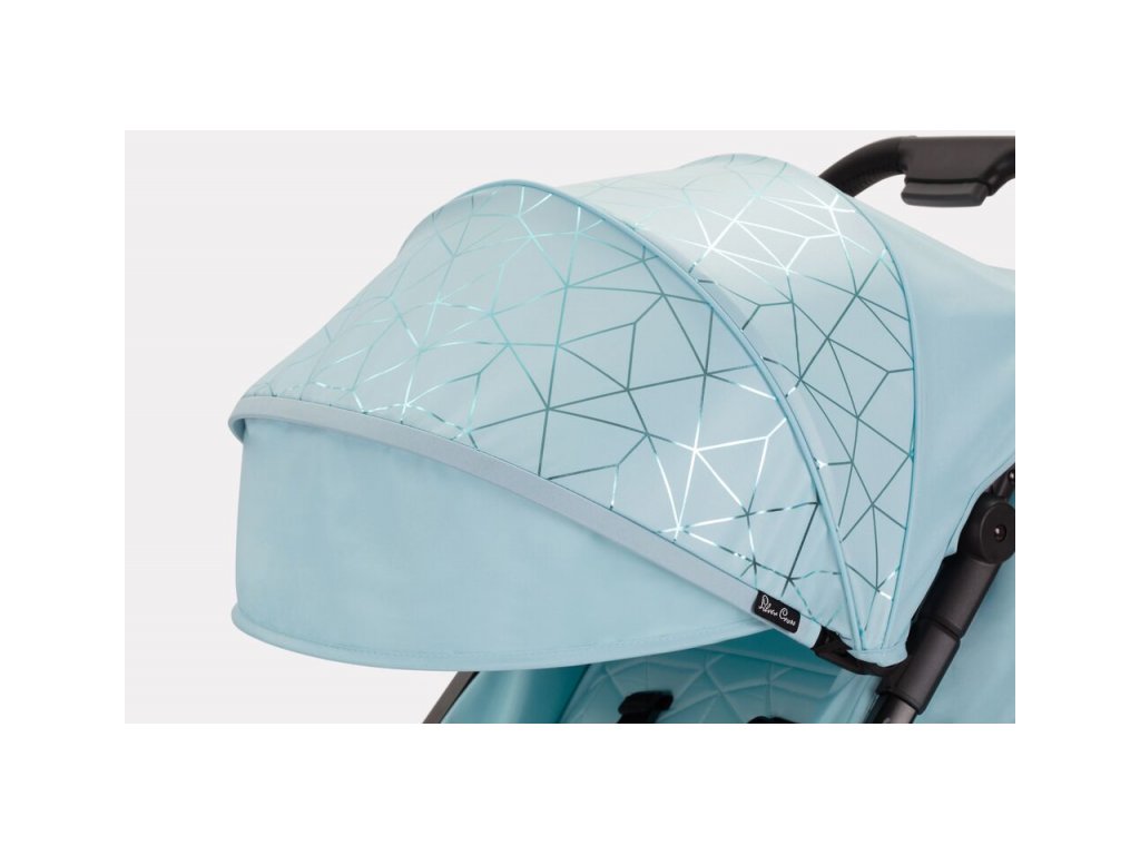 Kočárek upoutá svým originálním geometrickým vzorem na stříšce a sedáku, inspirovaným lomeným světlem. Na stříšce je vzor tvořen metalickým potiskem, na polstrovaném sedáku jej tvoří prošívání.