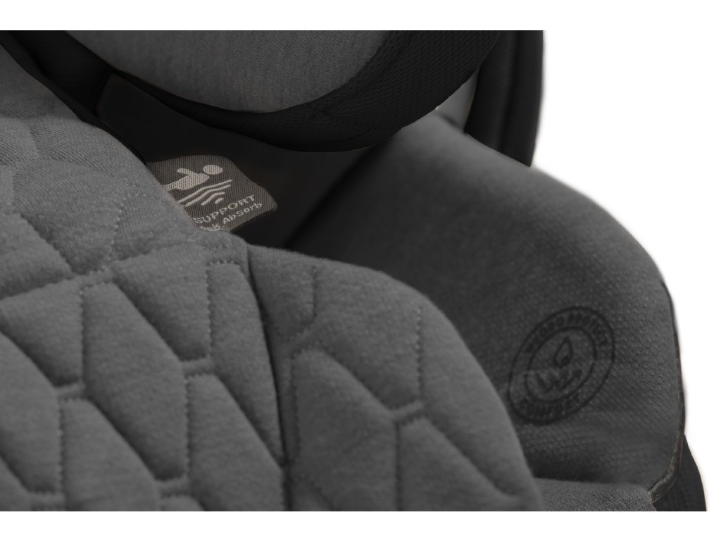 Nastavitelná nepropustná vložka pro novorozence HydroProtect poskytuje pohodlí a bezpečí dítěti od narození. Osm poloh opěrky hlavy umožňuje přizpůsobit autosedačku výšce rostoucího dítěte. Tři polohy náklonu nabízí pohodlí při spánku i při pozorování okolí z okna auta. 5-bodové bezpečnostní pásy s inovativním systémem EasyFit maximálně usnadňují manipulaci s dítětem. Od výšky 100 cm (cca od 4 let) se dítě v autosedačce poutá bezpečnostními pásy vozidla. 5-bodové pásy se v tomto věku dítěte snadno skryjí do vnitřku autosedačky. Pro maximální pohodlí dítěte je autosedačka potažena kombinací měkké, prodyšné bambusové tkaniny a textilie vyráběné s ohledem na udržitelnost životního prostředí z recyklovaných PET lahví.