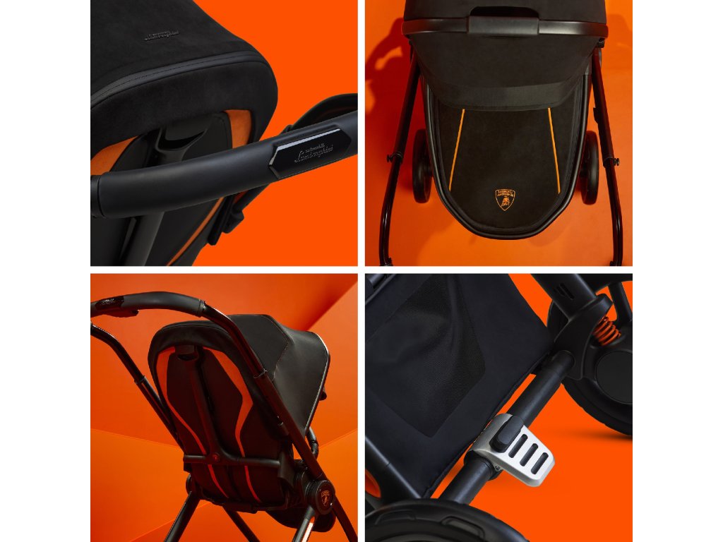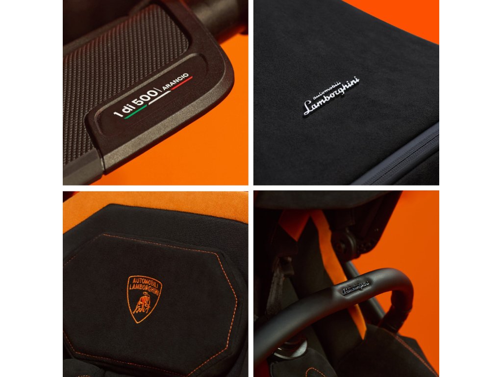 Unikátní detaily doplňují Reef AL Arancio – každé madlo a brzda inspirovaná automobilovým pedálem jsou dokončeny ručně. Designový rám kočárku je inspirován ikonickým vzorem z interiéru vysoce výkonných vozů Automobili Lamborghini, propojujícím design a hodnoty napříč všemi disciplínami.