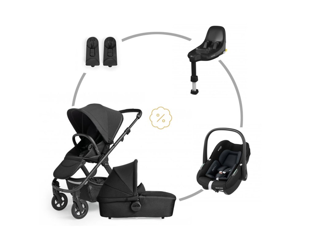 Ke kočárku je možné dokoupit adaptéry pro připevnění autosedačky a sadu doplňků, která obsahuje fusak, přebalovací batoh, držák na nápoje a držák na telefon.