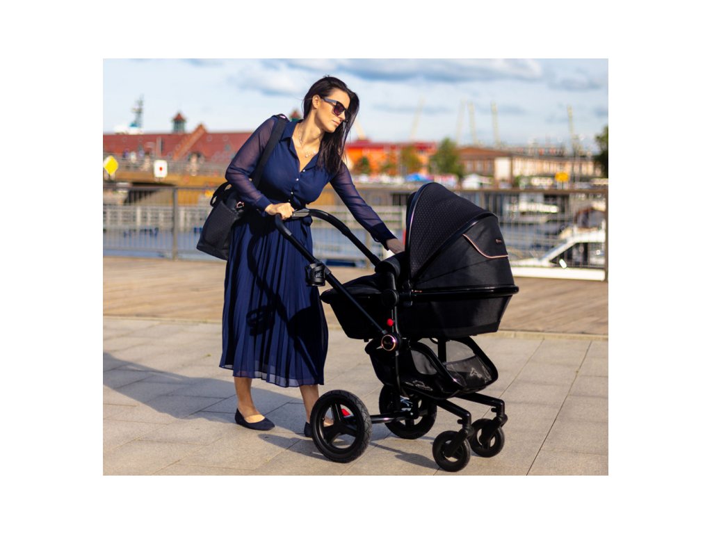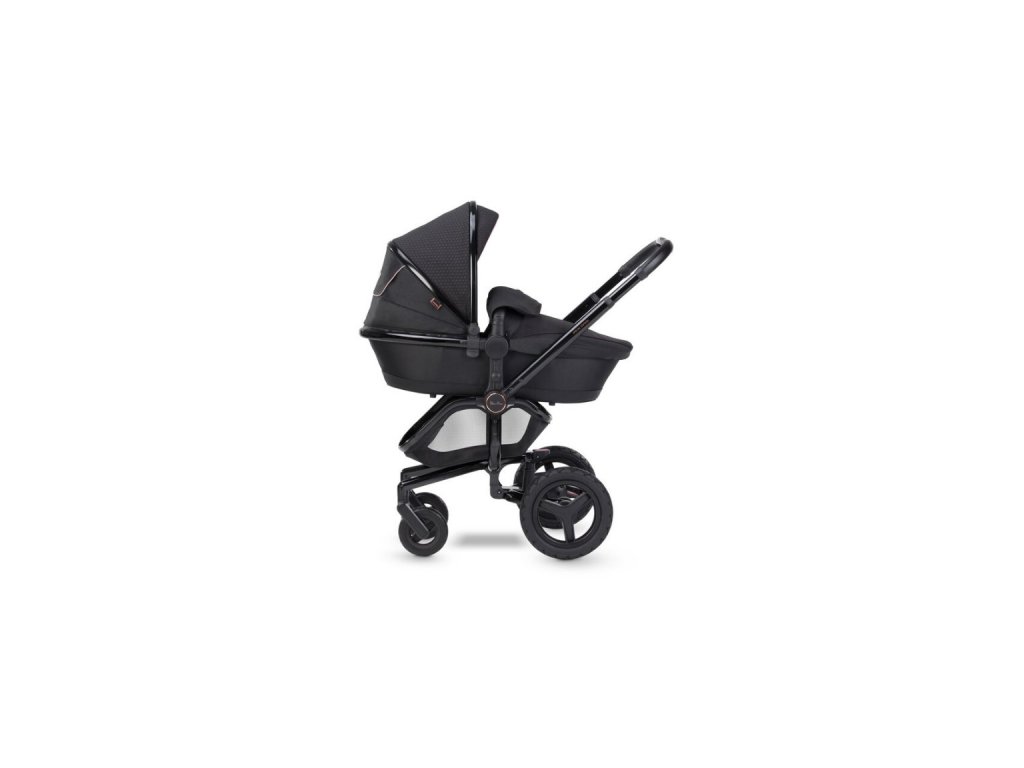 Korbička s vyjímatelnou matrací pro děti od narození je vhodná i pro celonoční spánek. Stříška je vybavena okénkem pro rychlou kontrolu dítěte a síťovaným panelem pro větrání korbičky během teplých letních dní. Anatomicky tvarovaný sportovní sedák je možné umístit po i proti směru jízdy a sklopit jej do úplného lehu pro zdravé spaní. 5-bodové bezpečnostní pásy zajišťují bezpečné usazení dítěte v sedáku. Vnější části korbičky i sedáku jsou potažené luxusní flanelovou textilií, vnitřní části pak jemnou bavlněnou tkaninou.