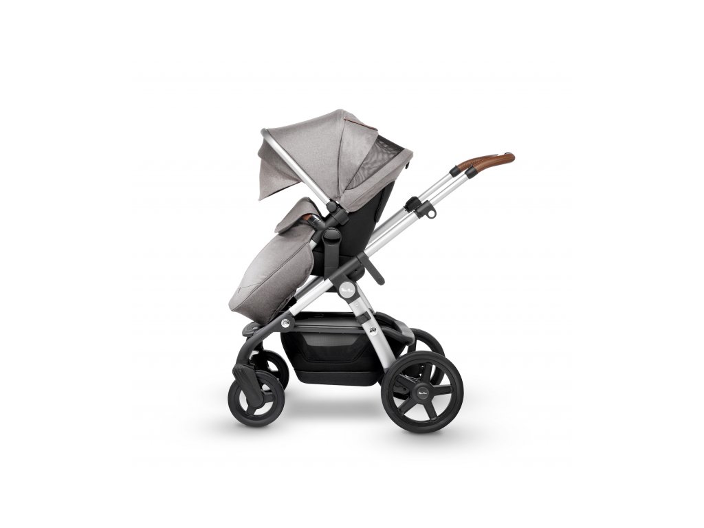 Luxusní vzhled kočárku dotváří použitý elegantní textilní materiál s lemováním z umělé kůže a kovovými detaily. Prostorný nákupní košík s pevnou konstrukcí vám umožní bezpečné převážení všeho nezbytného při procházkách i nákupech. Držák nápojů můžete umístit dle vaší potřeby na obou stranách kočárku.