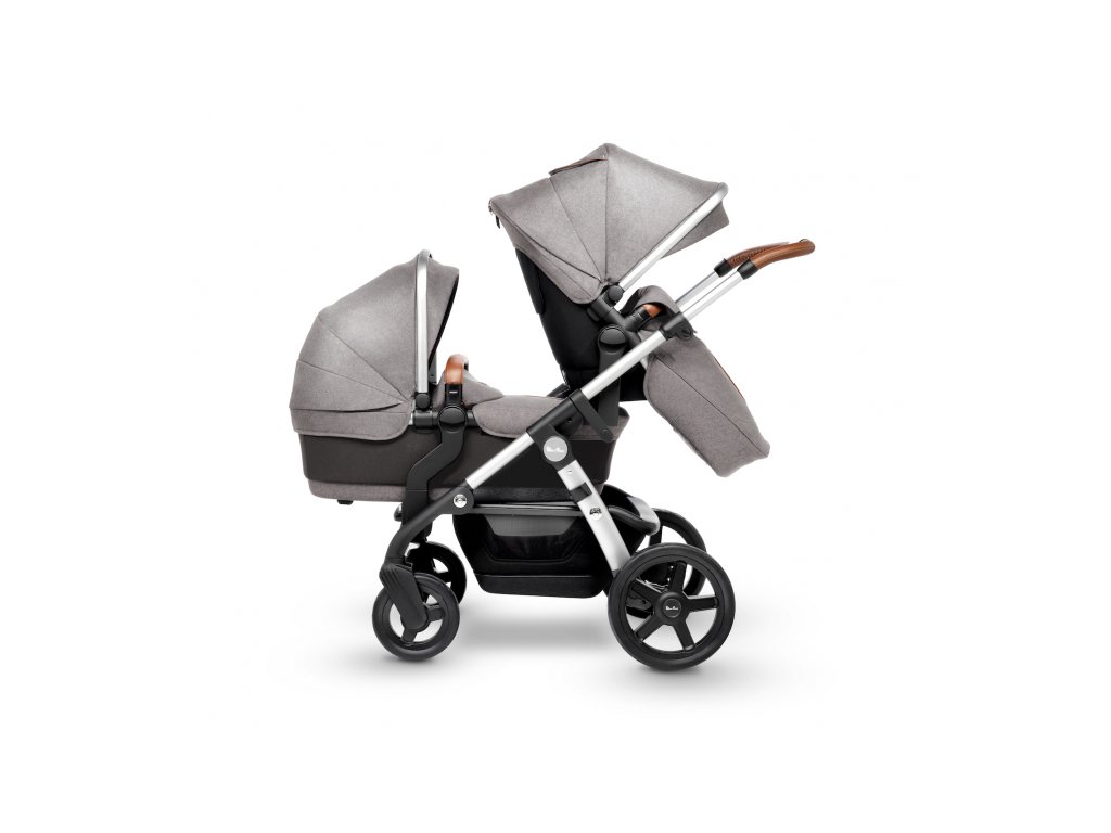 V případě použití pro dvojčata je ke kočárku nutné dokoupit druhou korbičku a druhý sedák.