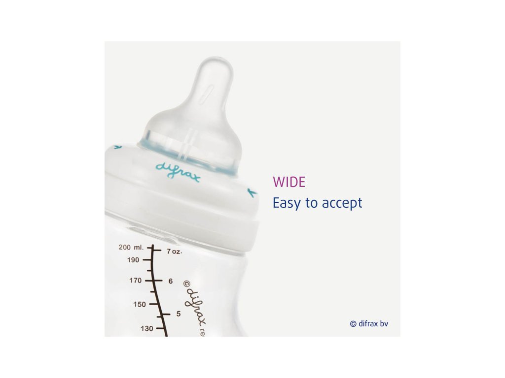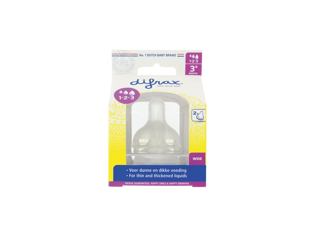 Difrax 1-2-3 Variflow savička se postará díky přirozenému tvaru imitující mateřský prs o to, že miminko si na krmení z lahvičky zvykne ve velice krátkém časovém intervalu. Savička má velice jemný a měkký povrch a je vyrobena z bezpečného vysoce kvalitního silikonu bez použití BPA. Savička je designována tak, aby simulací prsu stimulovala sací instinkt miminka, je proto ideální volbou pro kombinované kojení a krmení z lahvičky. Průtok výživy lze nastavit třemi stupni systému Variflow, které obsáhnou potravu od té nejtekutější až k husté jako je kašička apod. Vybraný stupěň průtoku je indikován vroubky po stranách savičky.