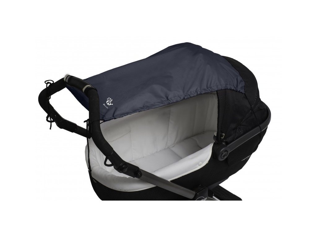 - Komfortní! Lze jednoduše upevnit: na rukojeť kočárku pomocí šňůry a na střeše gumovým páskem a pevně drží i při silném větru.