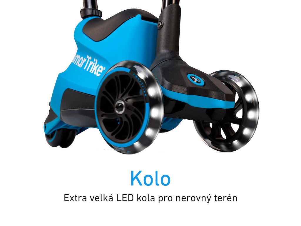 extra velká přední LED kola pro hladkou jízdu na nerovném terénu