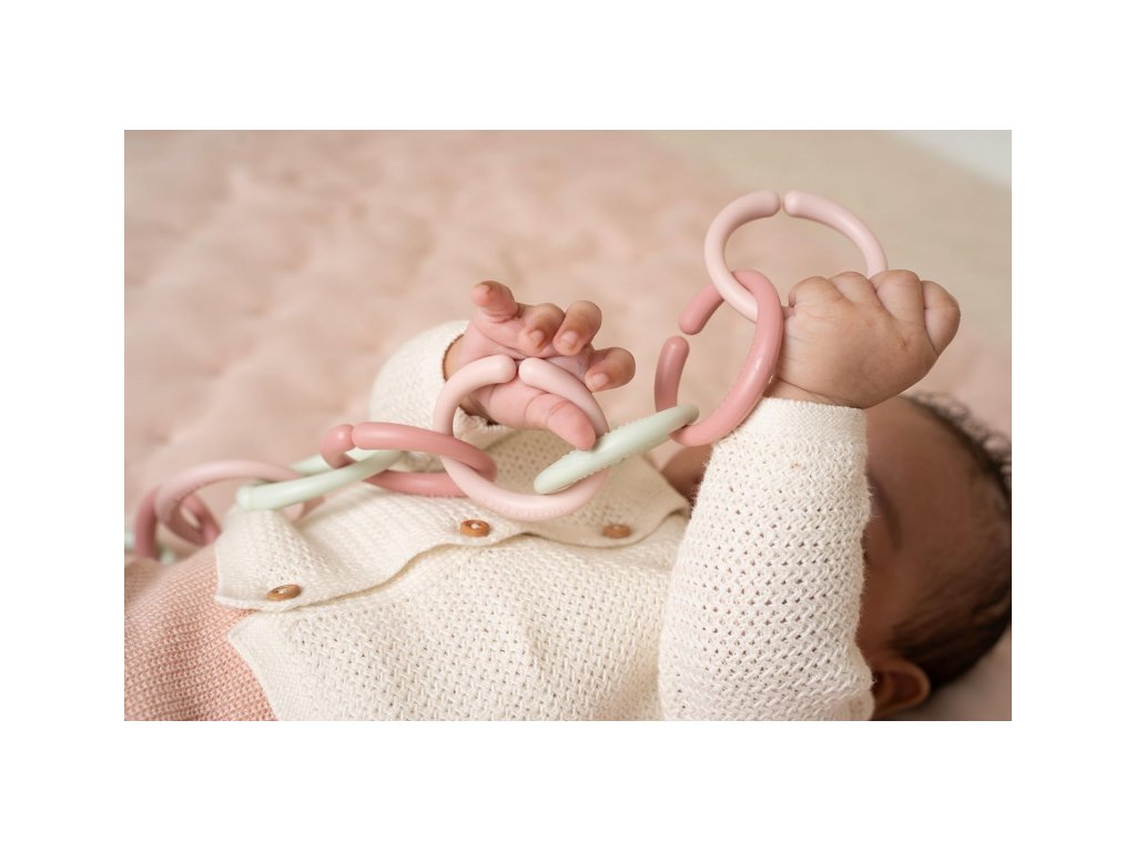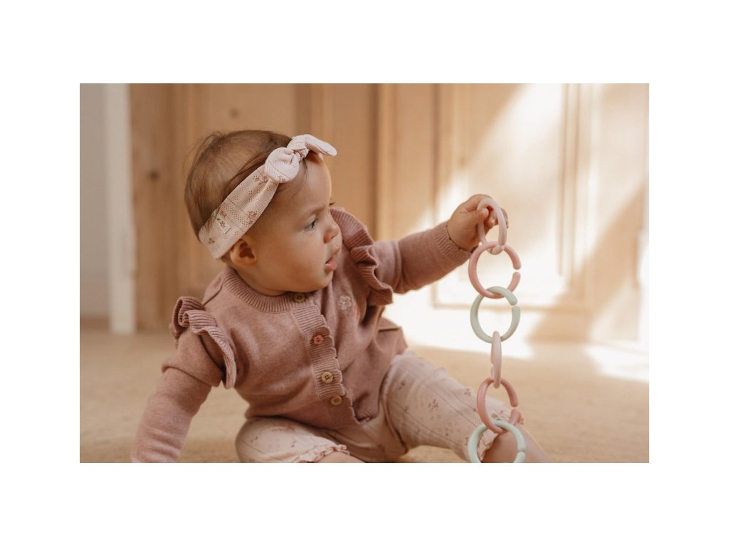 Multifunkční kroužky tvořící po spojení řetěz slouží jako hračka pro děti i jako pomůcka pro připevnění hraček ke kočárku či autosedačce. Dvanáct kroužků vytvoří řetěz ideální délky pro použití v kočárku. Kroužky jsou vyrobené z PP materiálu, který je zcela bezpečný pro zkoumání rukama i ústy dítěte. Balení obsahuje 12 kroužků. Hračka je součástí designové kolekce hraček a doplňků Little Dutch Fairy Garden inspirované životem na louce. Vhodné pro děti od narození.