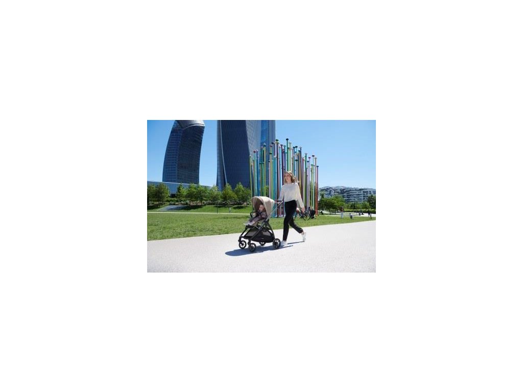 - Kočárek se dodává s nánožníkem a plnou stříškou s UV ochranou (UPF 50+)
