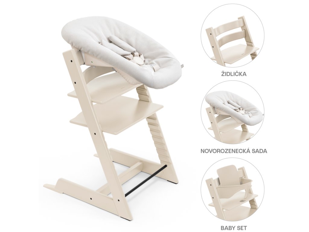 - Židle Tripp Trapp® + Baby Set² a Tripp Trapp® Newborn Set je naše řešení 3v1, které přivede vašeho novorozence k jídelnímu stolu a blíže k rodině. Poté plynule přejde na podporu sezení od 6 měsíců s Baby Set².