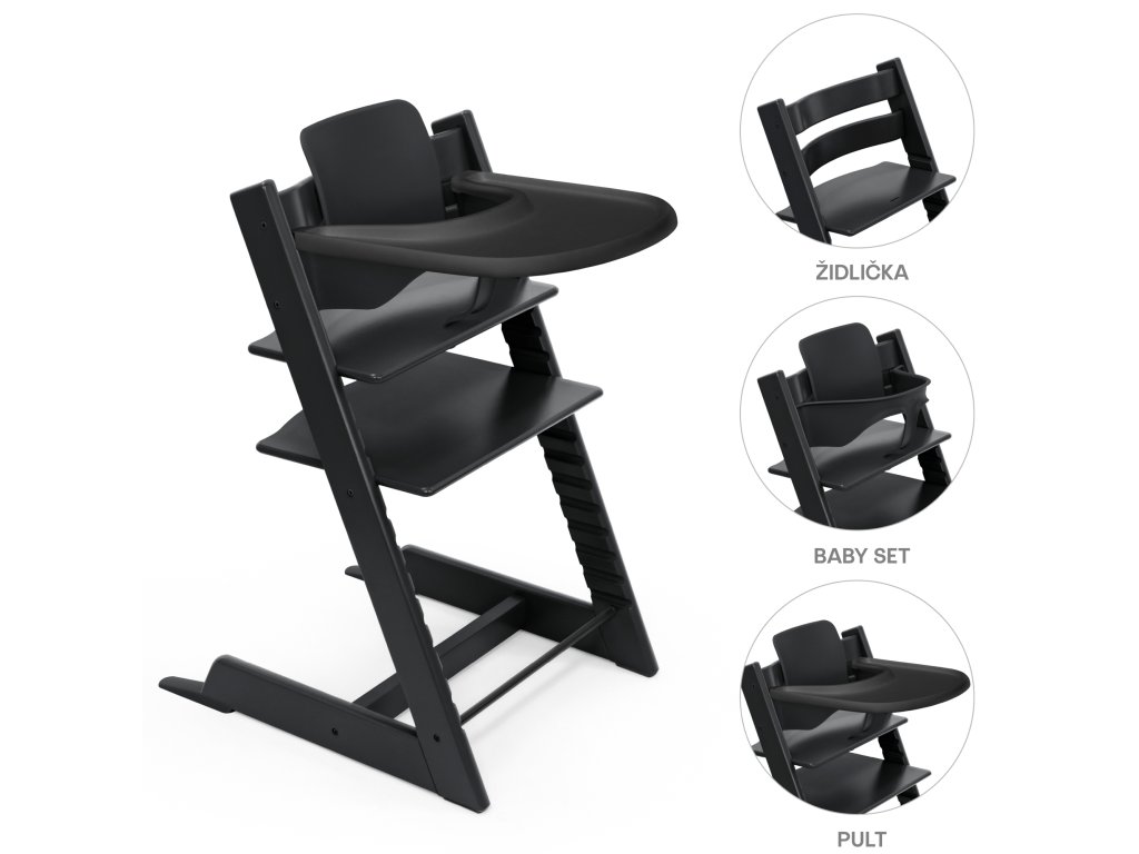 Stokke Židlička Tripp Trapp® + Baby set + pult Black - zvýhodněný set
