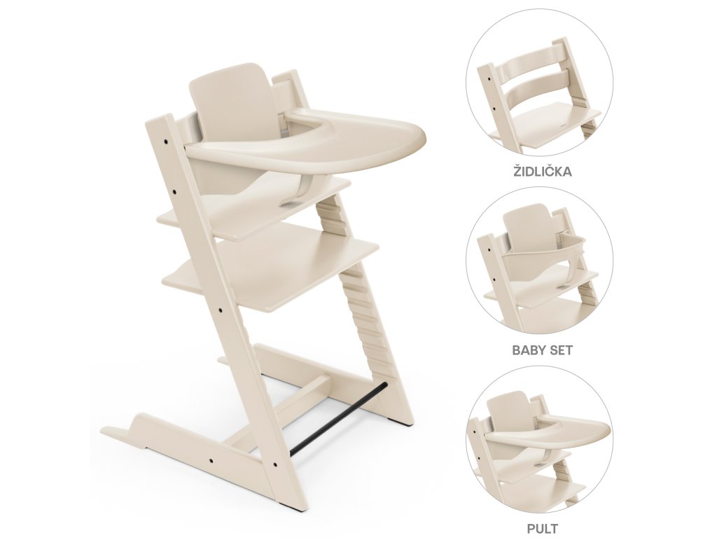 Stokke Židlička Tripp Trapp® + Baby set + pult Vanilla White - zvýhodněný set