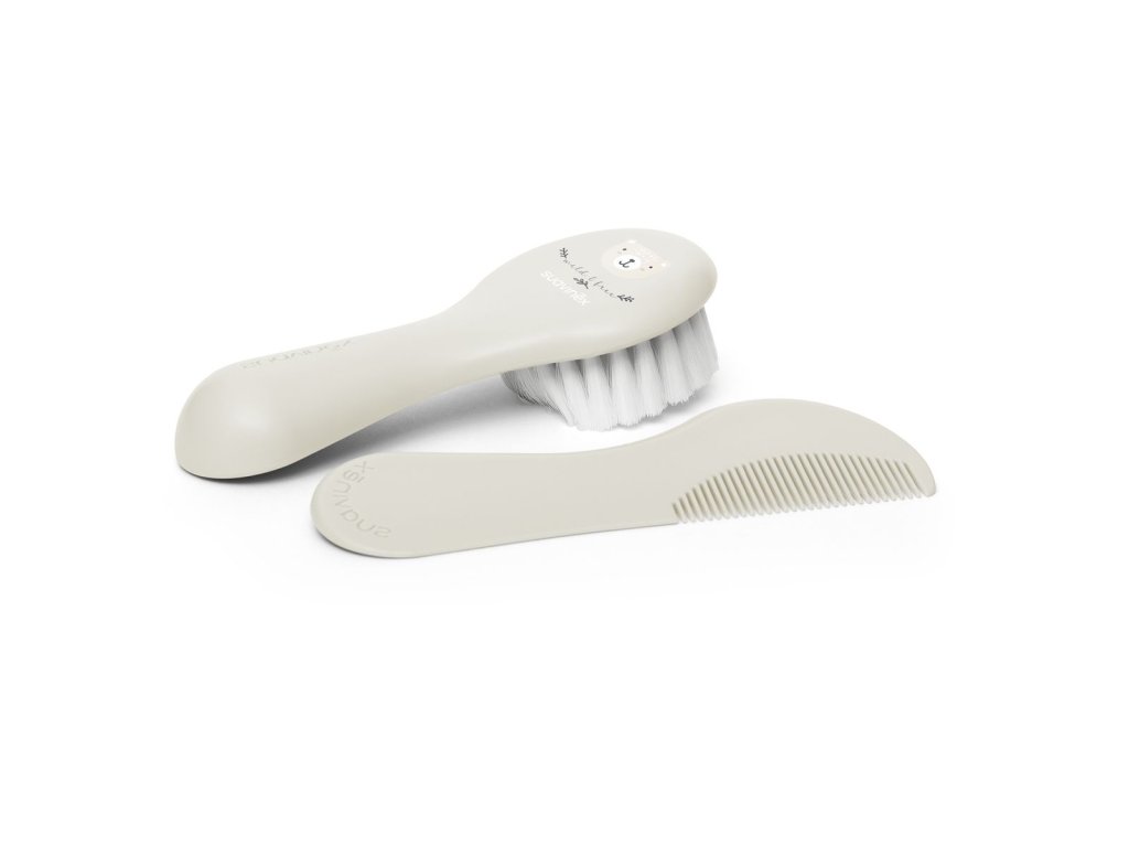Set hřebenu a kartáčku je ideálním pomocníkem pro každodenní péči o vlásky děťátka. Dopřejte jemnou masáž i miminku, které má jen jemné chmýří. Kartáč i hřeben jsou bez ostrých a nebezpečných hran, které by mohly být dítěti nebezpečné. Zuby hřebínku mají zaoblené konce a vlákna kartáčku jsou měkoučké a pružné. Ideální pro jemnou dětskou pokožku i vlásky, vhodné pro miminka od narození.