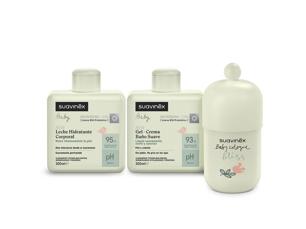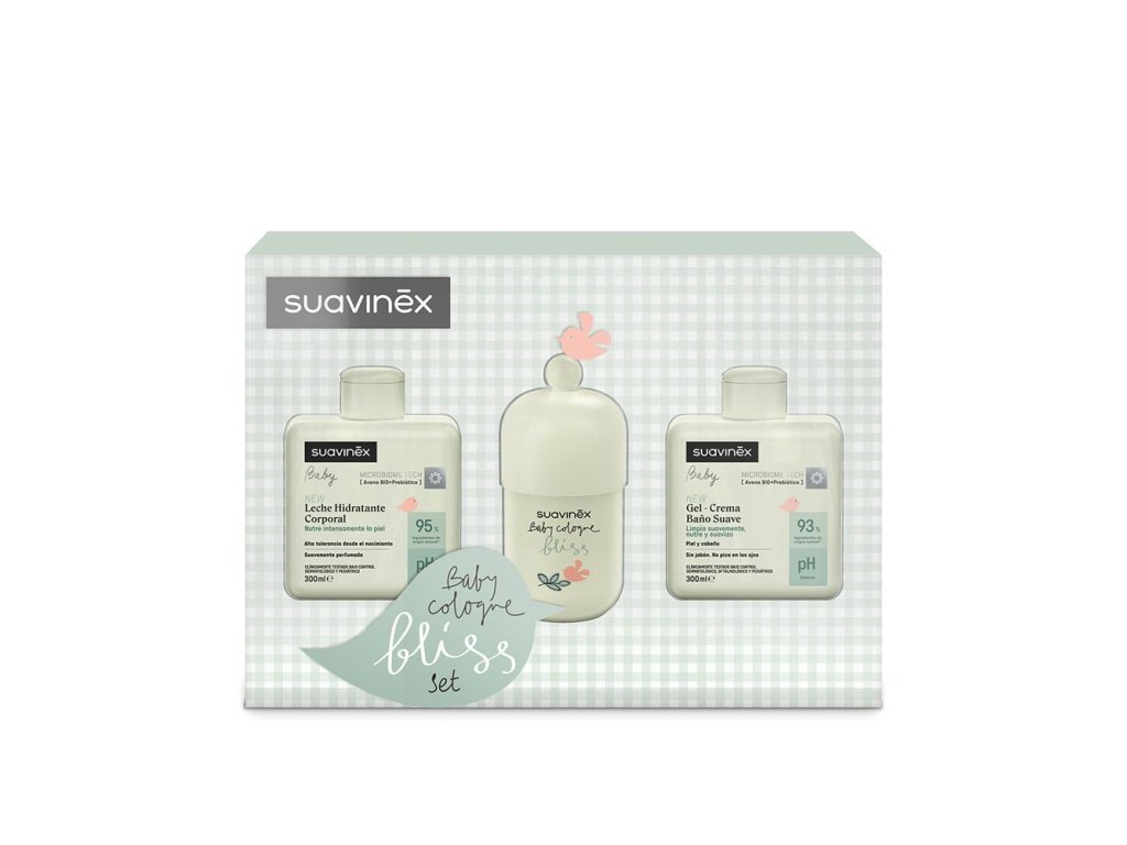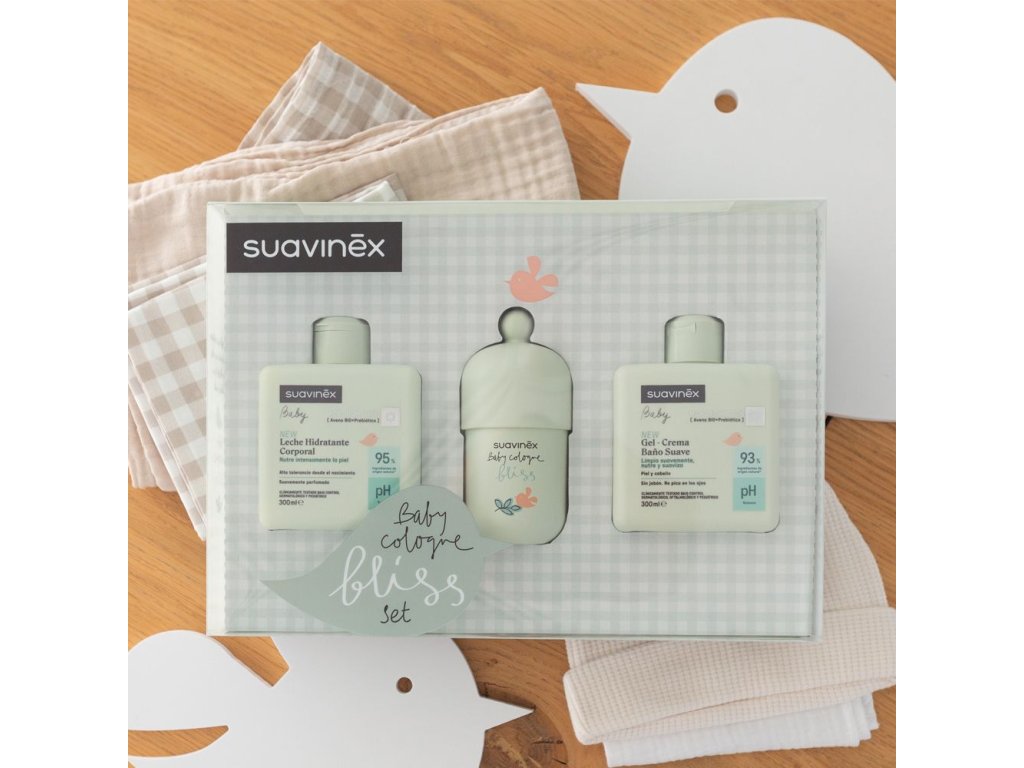 SUAVINEX Set hydratační emulze 300 ml + krémový mycí gel 300 ml + kolínská Bliss 100 ml