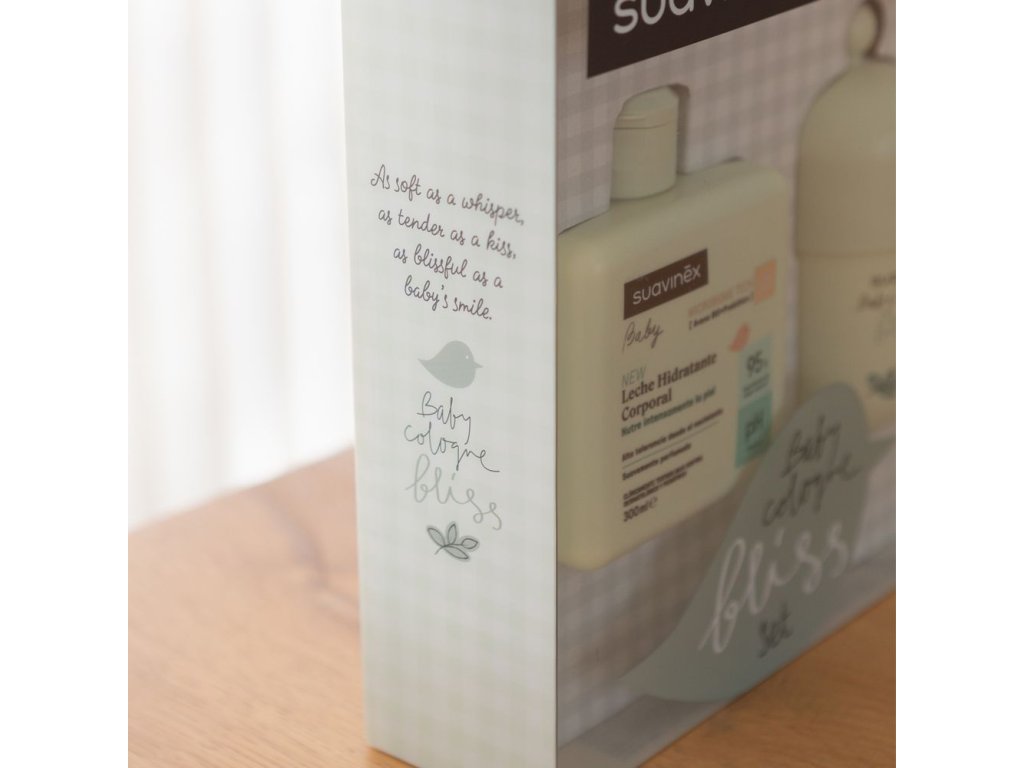 Krásná dárková sada Baby Cologne Bliss obsahující hydratační tělové mléko, jemný koupelový gel-krém a vůni BLISS. Dárek, který zanechá nezapomenutelný dojem – stejně jako jeho vůně! Ideální sada k přivítání novorozence nebo pro ty, kdo proměňují každodenní péči o dítě v projev lásky. Složena z přírodních ingrediencí, s vyváženým pH a vyvinutá ve Španělsku. Jedna vůně pro koupání, hydrataci i provonění miminka.