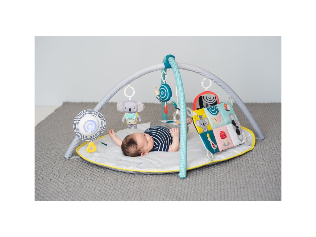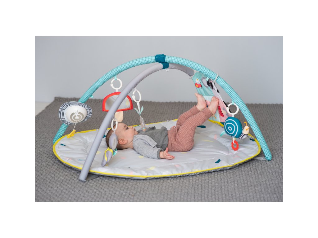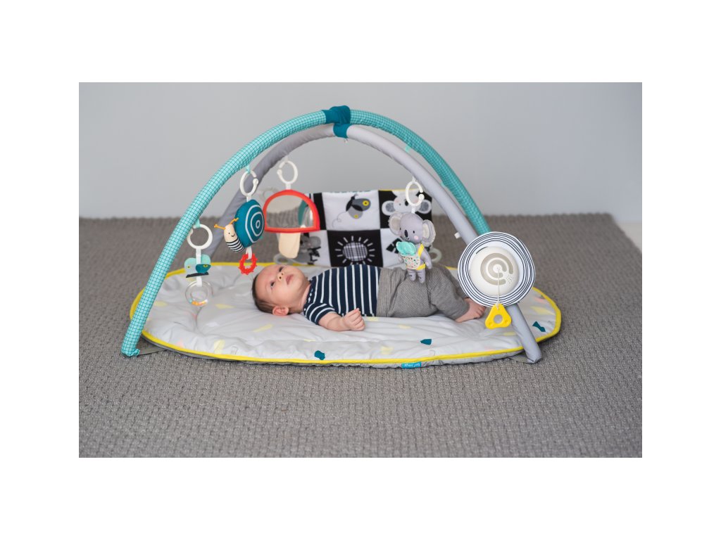 Měkká hrací deka s množstvím různorodých aktivit pro zkoumání a objevování je navržena pro různá věková stádia vývoje dítěte od narození.