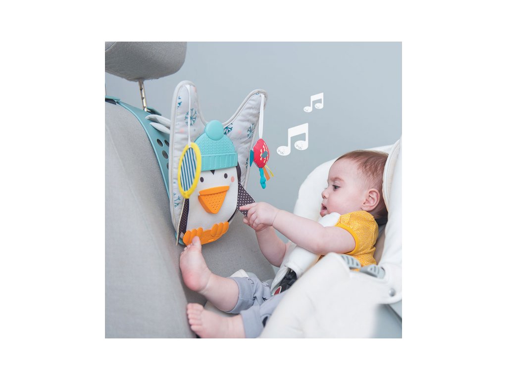 Hrací pultík do auta Taf Toys s hudbou a světélky zabaví vaše miminko na cestách autem a zajistí vám klid při řízení. Díky dálkovému ovladači můžete i během jízdy pouštět vašemu dítěti hudbu i světýlka. Můžete zvolit uklidňující melodii pro uspání dítěte i veselou melodii pro čas hraní.