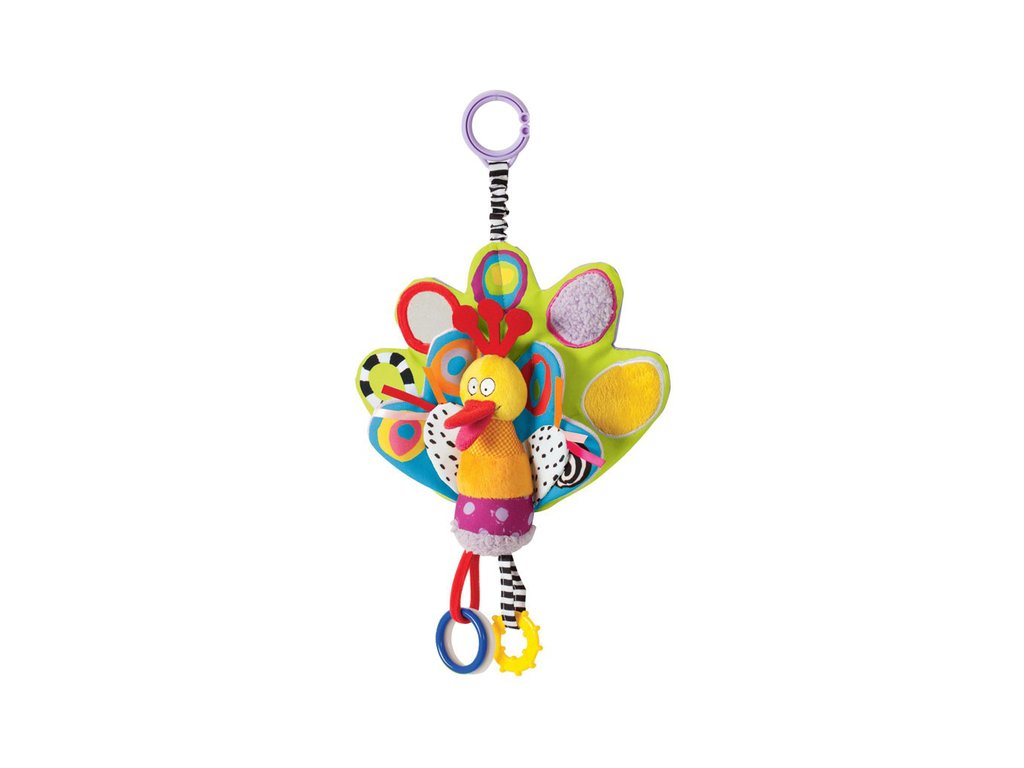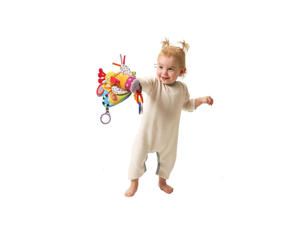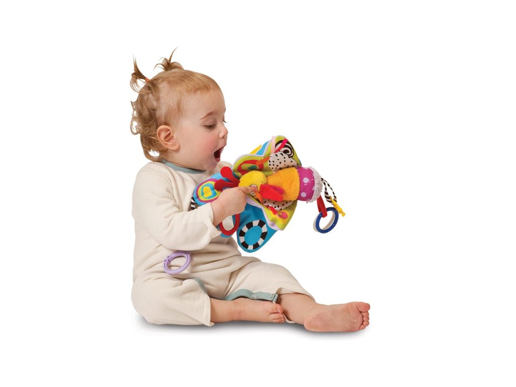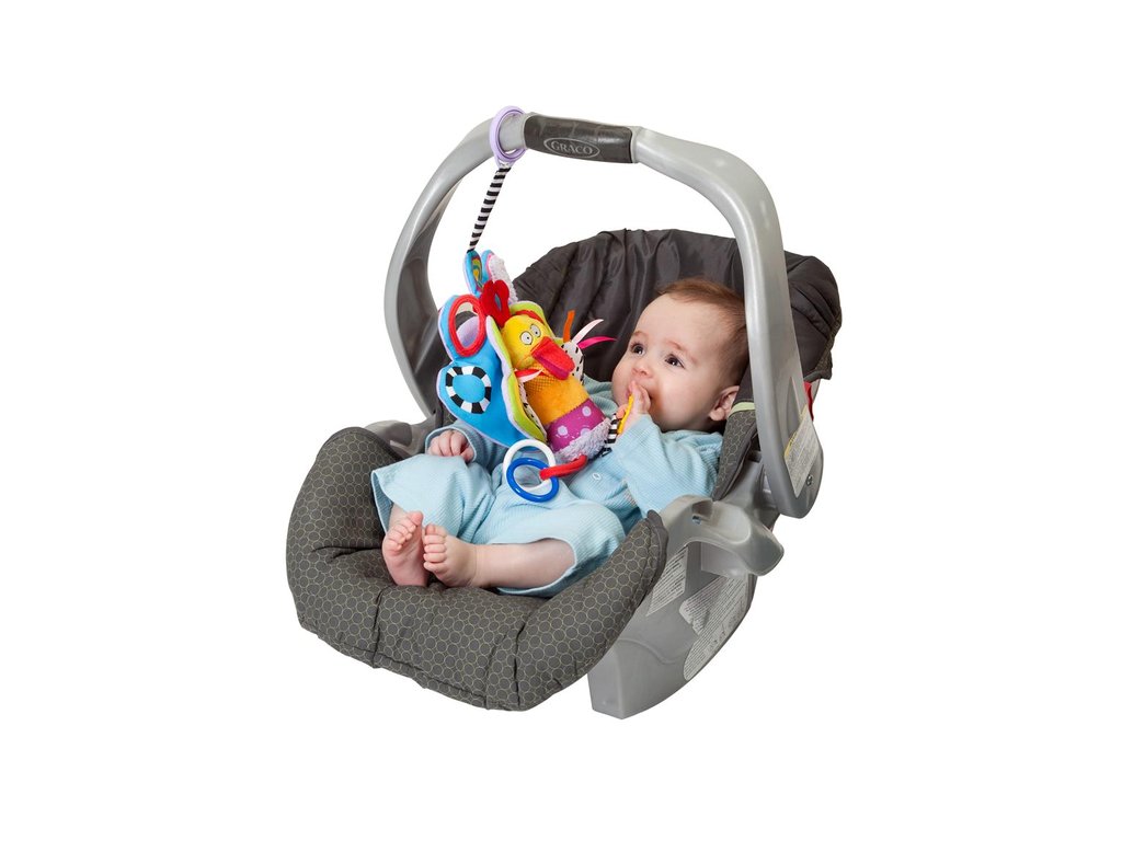 Barevná závěsná hračka Taf Toys s různými aktivitami, texturami i zvuky se snadno připevní pružným plastovým kroužkem na postýlku nebo kočárek. Hračka cinká, šustí, obsahuje kousátko, kroužky, pískátko a bezpečné zrcátko. Hra s různorodými aktivitami pomáhá rozvoji smyslů, motoriky a emoční intelligence dítěte. Vhodné od narození.