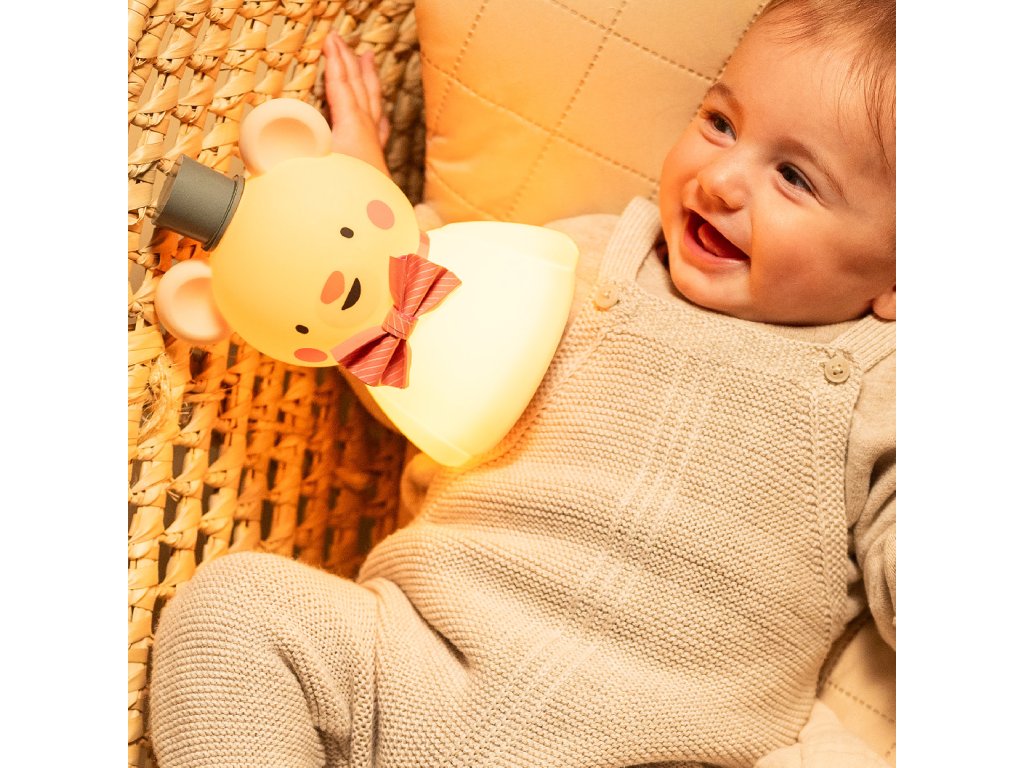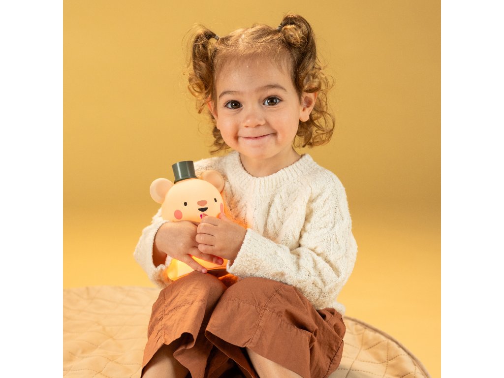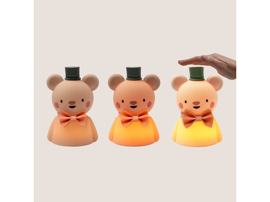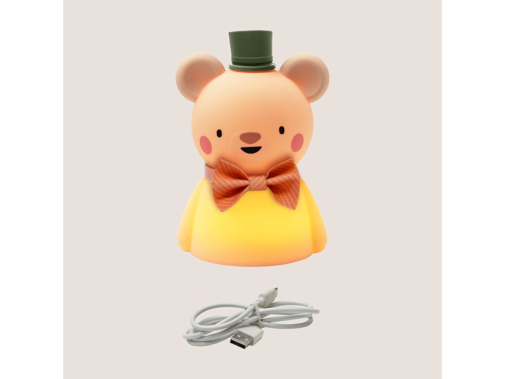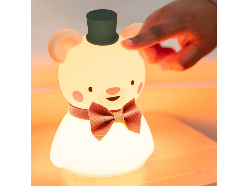 Dětská noční lampička v podbě roztomilého medvídka poskytuje jemné uklidňující světlo, které pomáhá dětem usnout s pocitem bezpečí. Lampička je vyrobena z jemného silikonu příjemného na dotek a nabíjí se pomocí USB-C kabelu.