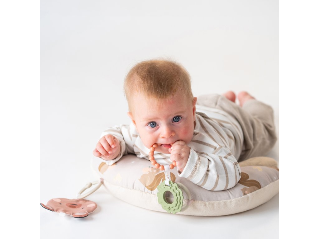 - Větší a pevnější polštářek pro děti od 2 do 6 měsíců podpírá hrudník dítěte a ponechává mu volné ruce - ideální pro natahování se po hračkách, smyslové objevování a první pokusy o plazení